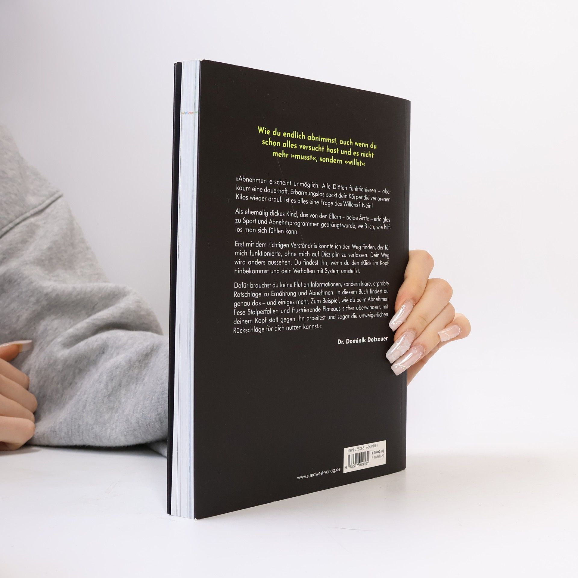 Wie man von „ich muss“ zu „ich will“ kommt Wie du endlich abnimmst, auch wenn du schon alles versucht hast und es nicht mehr »musst«, sondern »willst« »Abnehmen erscheint unmöglich. Alle Diäten funktionieren – aber kaum eine dauerhaft. Erbarmungslos packt dein Körper die verlorenen Kilos wieder drauf. Ist es alles eine Frage des Willens? Nein! Als ehemalig dickes Kind, das von den Eltern – beide Ärzte – erfolglos zu Sport und Abnehmprogrammen gedrängt wurde, weiß ich, wie hilflos man sich fühlen kann. Erst mit dem richtigen Verständnis konnte ich den Weg finden, der für mich funktionierte, ohne mich auf Disziplin zu verlassen. Dein Weg wird anders aussehen. Du findest ihn, wenn du den ›Klick im Kopf‹ hinbekommst und dein Verhalten mit System umstellst. Dafür brauchst du keine Flut an Informationen, sondern klare, erprobte Ratschläge zu Ernährung und Abnehmen. In diesem Buch findest du genau das – und einiges mehr. Zum Beispiel, wie du beim Abnehmen fiese Stolperfallen und frustrierende Plateaus sicher überwindest, mit deinem Kopf statt gegen ihn arbeitest und sogar die unweigerlichen Rückschläge für dich nutzen kannst.« Dr. Dominik Dotzauer Ausstattung: ca. 25 farbige Abbildungen