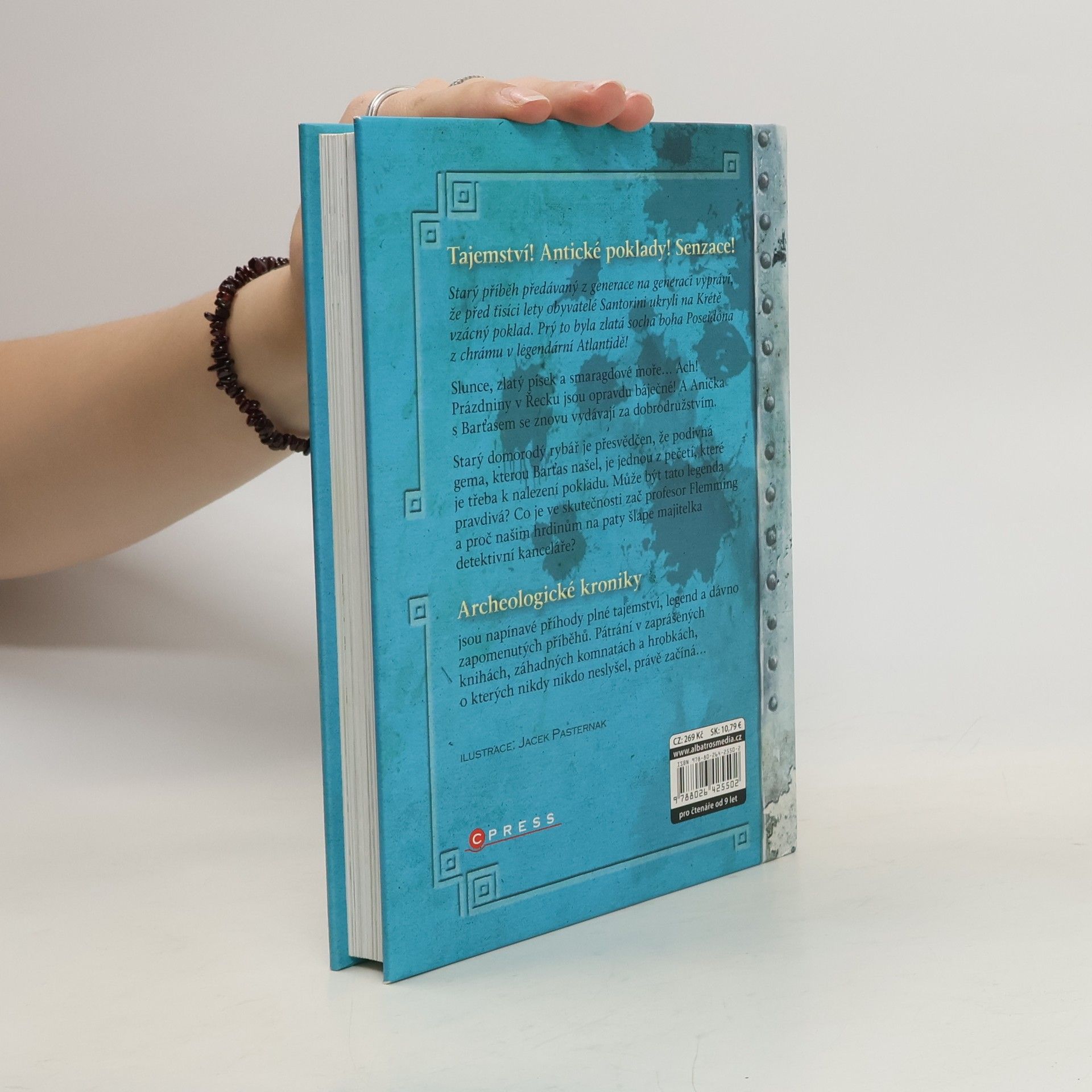 Tajemství! Antické poklady! Senzace! Starý příběh předávaný z generace na generaci vypráví, že před tisíci lety obyvatelé Santorini ukryli na Krétě vzácný poklad. Prý to byla zlatá socha boha Poseidóna z chrámu v legendární Atlantidě! Slunce, zlatý písek a smaragdové moře… Ach! Prázdniny v Řecku jsou opravdu báječné! A Anička s Barťasem se znovu vydávají za dobrodružstvím. Starý domorodý rybář je přesvědčen, že podivná gema, kterou Barťas našel, je jednou z pečetí, které je třeba k nalezení pokladu. Může být tato legenda pravdivá? Co je ve skutečnosti zač profesor Fleming a proč našim hrdinům na paty šlape majitelka detektivní kanceláře? Archeologické kroniky jsou napínavé příhody plné tajemství, legend a dávno zapomenutých příběhů. Pátrání v zaprášených knihách, záhadných komnatách a hrobkách, o kterých nikdy nikdo neslyšel, právě začíná…