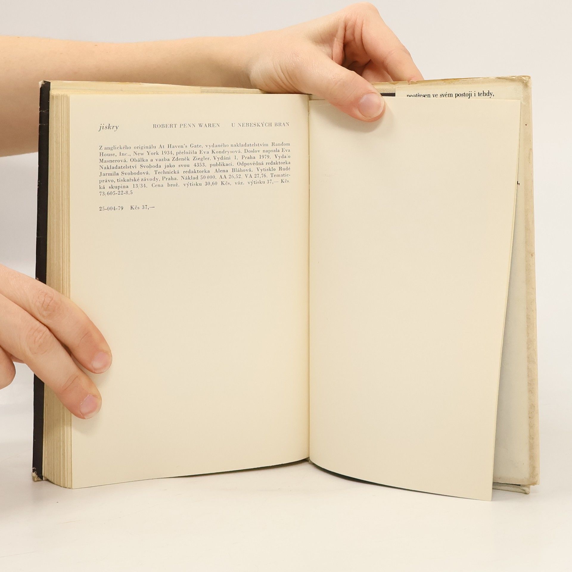 U nebeských bran, Robert Penn Warren, Eva Kondrysová, Eva Masnerová
