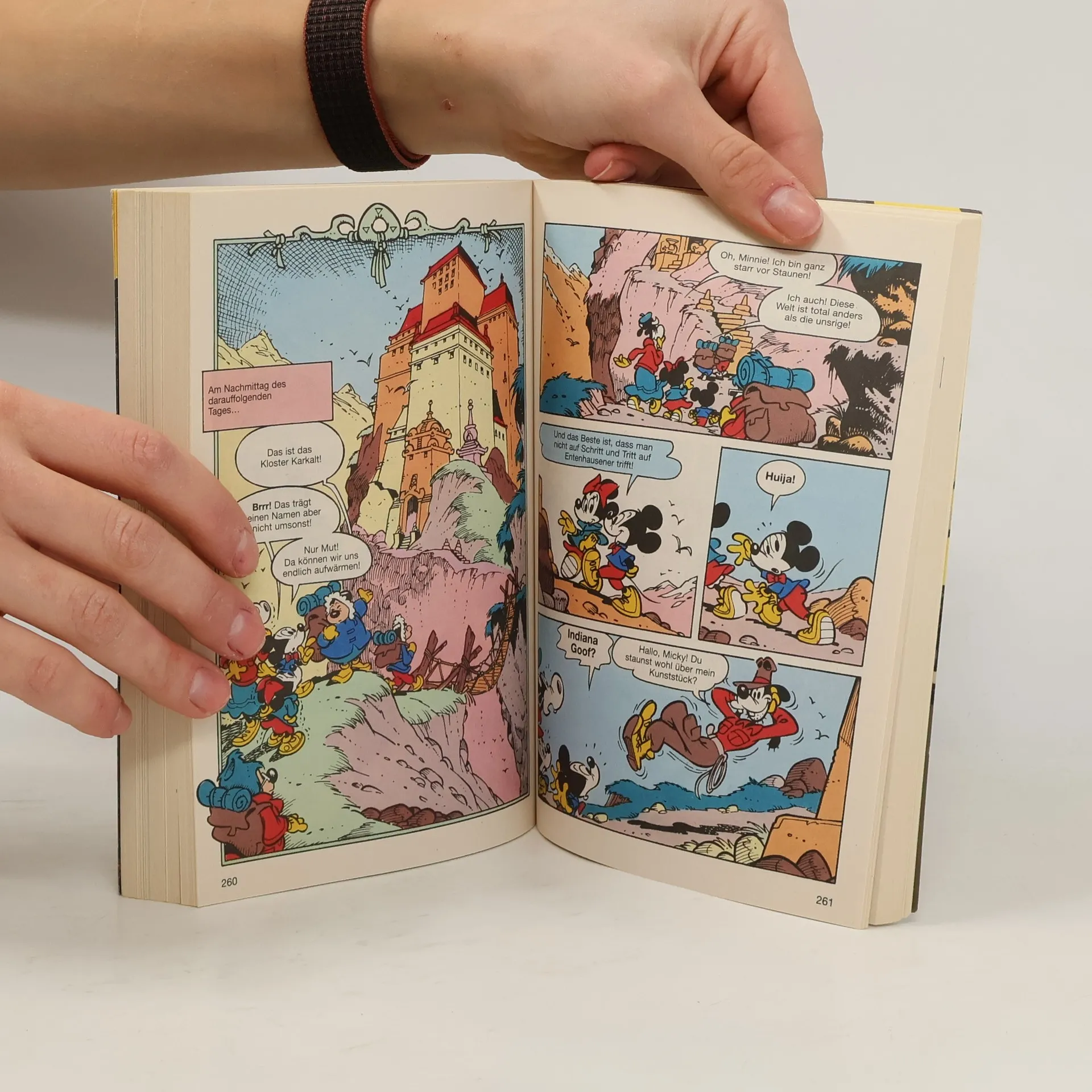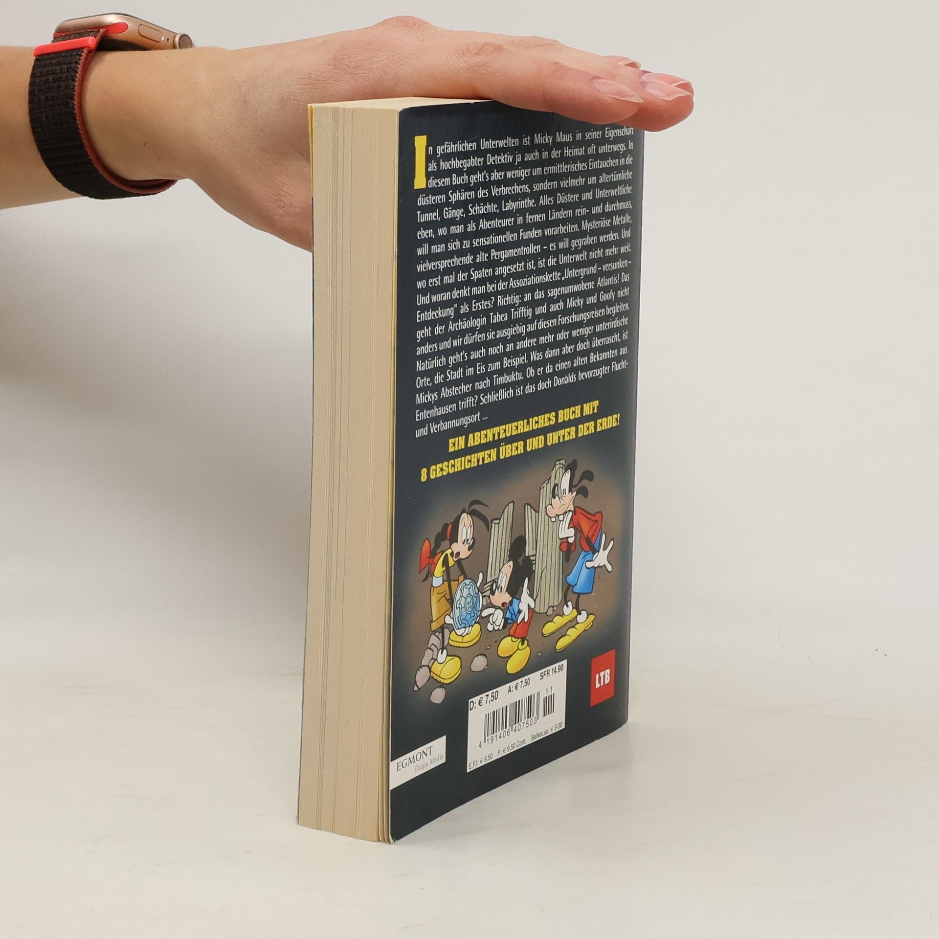 In gefährlichen Unterwelten ist Micky Maus in seiner Eigenschaft als hochbegabter Detektiv ja auch in der Heimat oft unterwegs. In diesem Buch geht’s aber weniger um ermittlerisches Eintauchen in die düsteren Sphären des Verbrechens, sondern vielmehr um altertümliche Tunnel, Gänge, Schächte, Labyrinthe. Alles Düstere und Unterweltliche eben, wo man als Abenteurer in fernen Ländern rein- und durchmuss, will man sich zu sensationellen Funden vorarbeiten. Mysteriöse Metalle, vielversprechende alte Pergamentrollen – es will gegraben werden. Und wo erst mal der Spaten angesetzt ist, ist die Unterwelt nicht mehr weit. Und woran denkt man bei der Assoziationskette „Untergrund – versunken – Entdeckung“ als Erstes? Richtig: an das sagenumwobene Atlantis! Das geht der Archäologin Tabea Trifftig und auch Micky und Goofy nicht anders und wir dürfen sie ausgiebig auf diesen Forschungsreisen begleiten. Natürlich geht’s auch noch an andere mehr oder weniger unterirdische Orte, die Stadt im Eis zum Beispiel. Was dann aber doch überrascht, ist Mickys Abstecher nach Timbuktu. Ob er da einen alten Bekannten aus Entenhausen trifft? Schließlich ist das doch Donalds bevorzugter Fluchtund Verbannungsort …