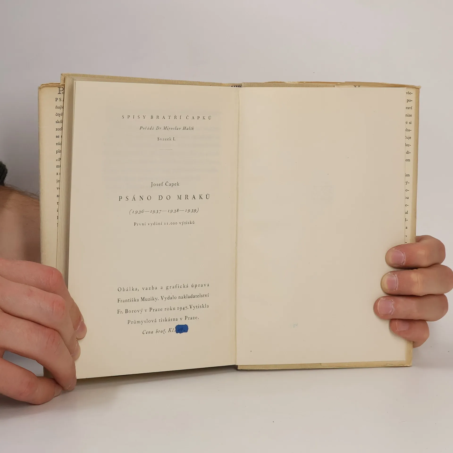 Psáno do mraků: 1936-1939, Josef Čapek