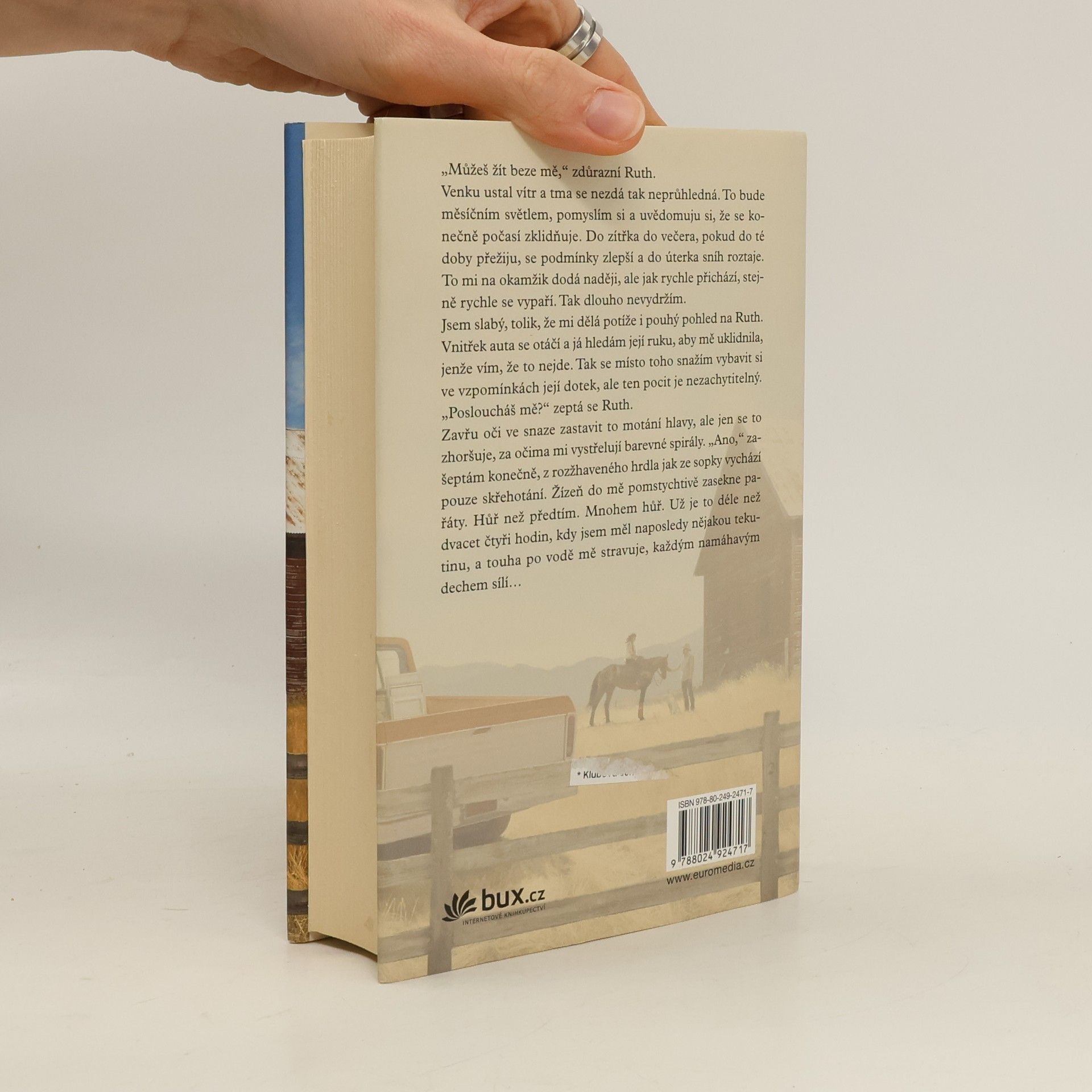 Jednadevadesátiletý Ira Levinson chce ještě naposledy zajet do hor na místo, kde strávil s milovanou Ruth líbánky. V hustém sněžení však přehlédne zatáčku. Na zledovatělém srázu se zlomenou rukou a rozbitou hlavou nezbývá Irovi než doufat, že si auta někdo všimne a zachrání ho. Při vědomí ho udržují vzpomínky na manželku, která zemřela před devíti lety. O pár desítek kilometrů dál se Sophia Danková, dcera slovenského emigranta a Francouzky, poprvé v životě jede podívat na býčí rodeo, aby přišla na jiné myšlenky po nepříjemném rozchodu. Seznámí se s vítězem závodu, sympatickým kovbojem Lukem. Luke žije jen s matkou na ranči, stará se o dobytek, koně, pěstuje zeleninu, stromy, každý den tvrdě pracuje, aby rodinný majetek ve finančních nesnázích zachránil. Sophia se ocitá ve světě, jenž má jen pramálo společného s pohodlným životem studentky dějin umění. Navíc Luke skrývá tajemství, které by mohlo jejich vztah ukončit. Ira a Ruth. Luke a Sophia. Dvě dvojice, jejichž osudy se nečekaně propletou. Kdo koho vlastně zachrání?