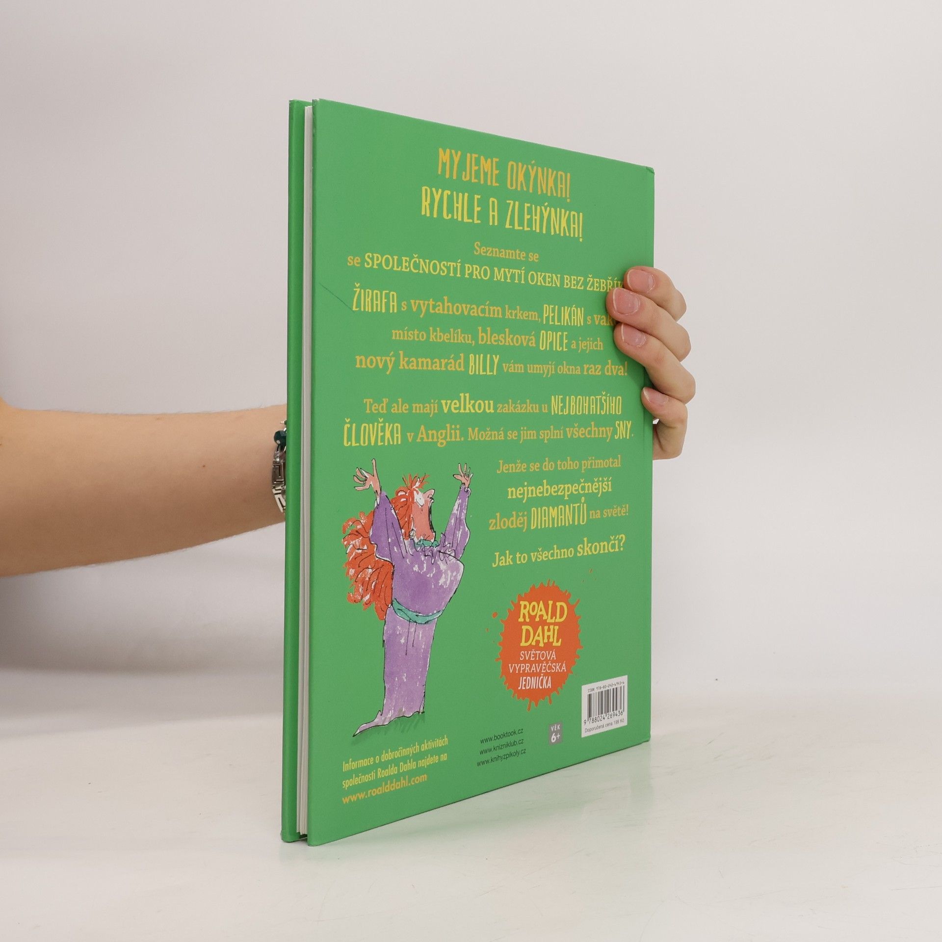 Billy sní o tom, že promění kouzelný starý dům v překrásný obchod s cukrovinkami. Bude až po strop naplněný pralinkami, karamelkami, lentilkami, žvýkačkami, lízátkama a spoustou dalších skvělých dobrot. Ale jak, když se mu do něj nastěhovali žirafa, pelikán a opice a zřídili si v něm BČO? Bezžebříkové čistění oken! „Všechno dáme do parády, žirafa, pelikán a já“, volají na Billyho svůj slogan. Brzy se s nimi skamarádí, a když společně narazí na nejbohatšího muže Anglie, vévodu z Hampshiru, Billyho smělý a úžasný sen se možná i splní. Kniha je určena pro děti od 6 let.