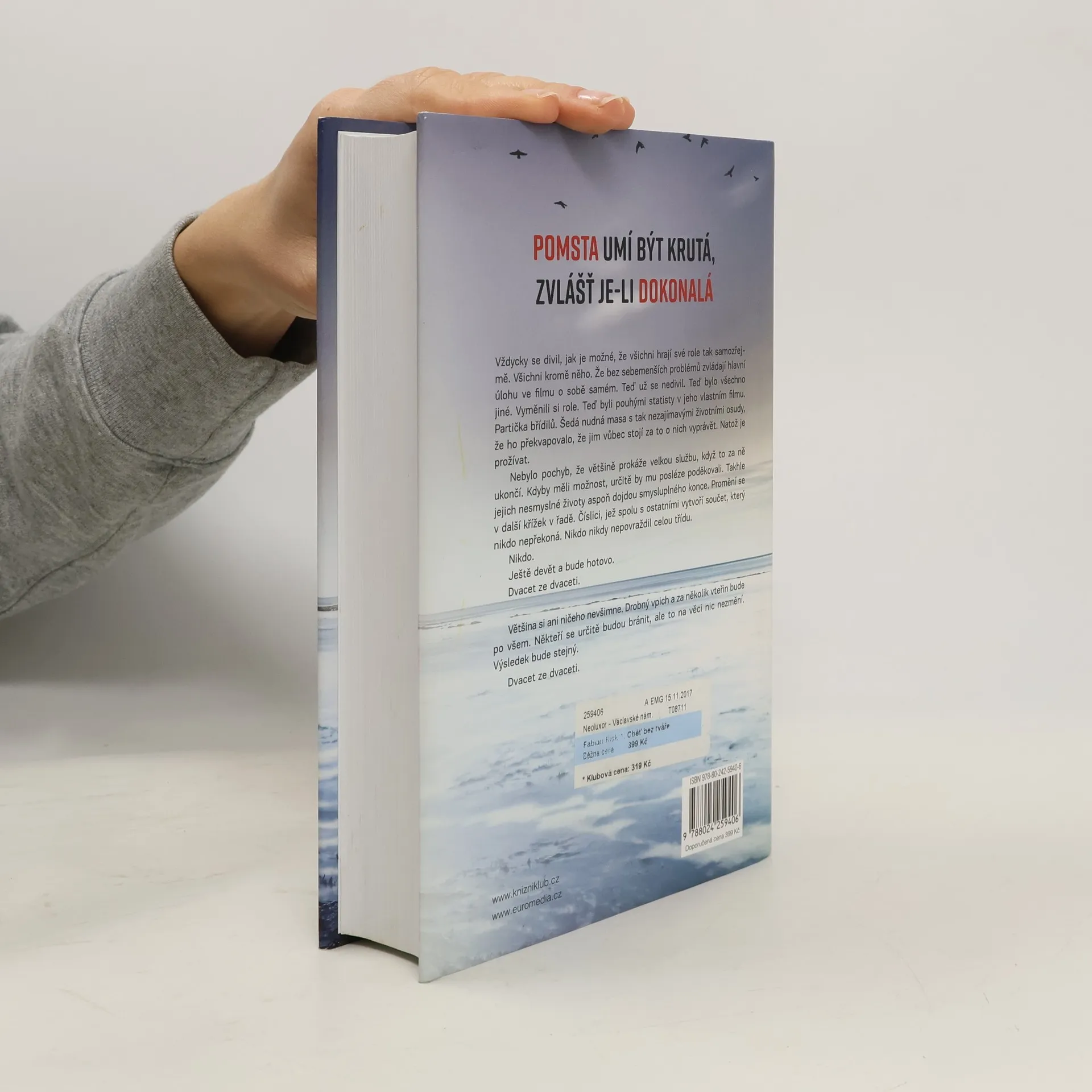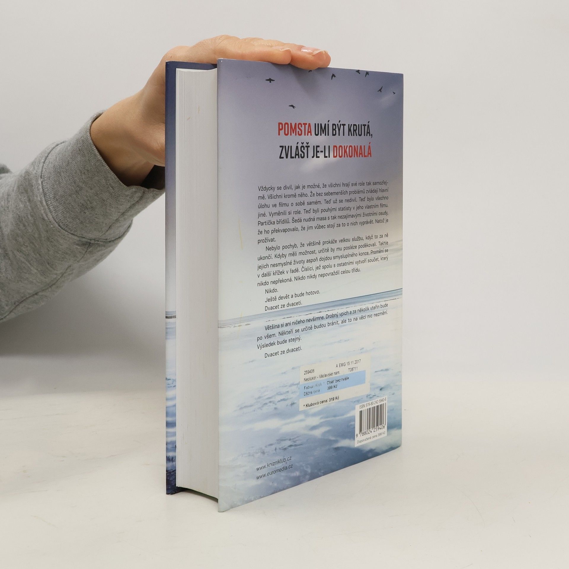 Nový zářivý přírůstek do plejády hvězd švédské krimi – série temných detektivek Stefana Ahnhema sklízí úspěchy v šestadvaceti zemích. POMSTA UMÍ BÝT KRUTÁ, ZVLÁŠŤ JE-LI DOKONALÁ Dvě zohavené mrtvoly. Dva bývalí spolužáci. A u obou se našla třicet let stará třídní fotografie s jejich přeškrtnutými obličeji – vzkaz pro Fabiana Riska. Stockholmský detektiv Fabian Risk se právě vrátil zpět do rodného Helsingborgu. Nastoupil na místní kriminální oddělení a hned po příjezdu dostane případ oněch brutálních sériových vražd. A ne náhodou – na školním snímku je totiž i Fabianova tvář. Z paměti se začnou nořit vzpomínky na dětství. Vzpomínky, na něž Fabian není příliš hrdý. Jedna z těch dávných událostí vyvolala něčí vražednou nenávist – a krutou touhu po dokonalé pomstě…