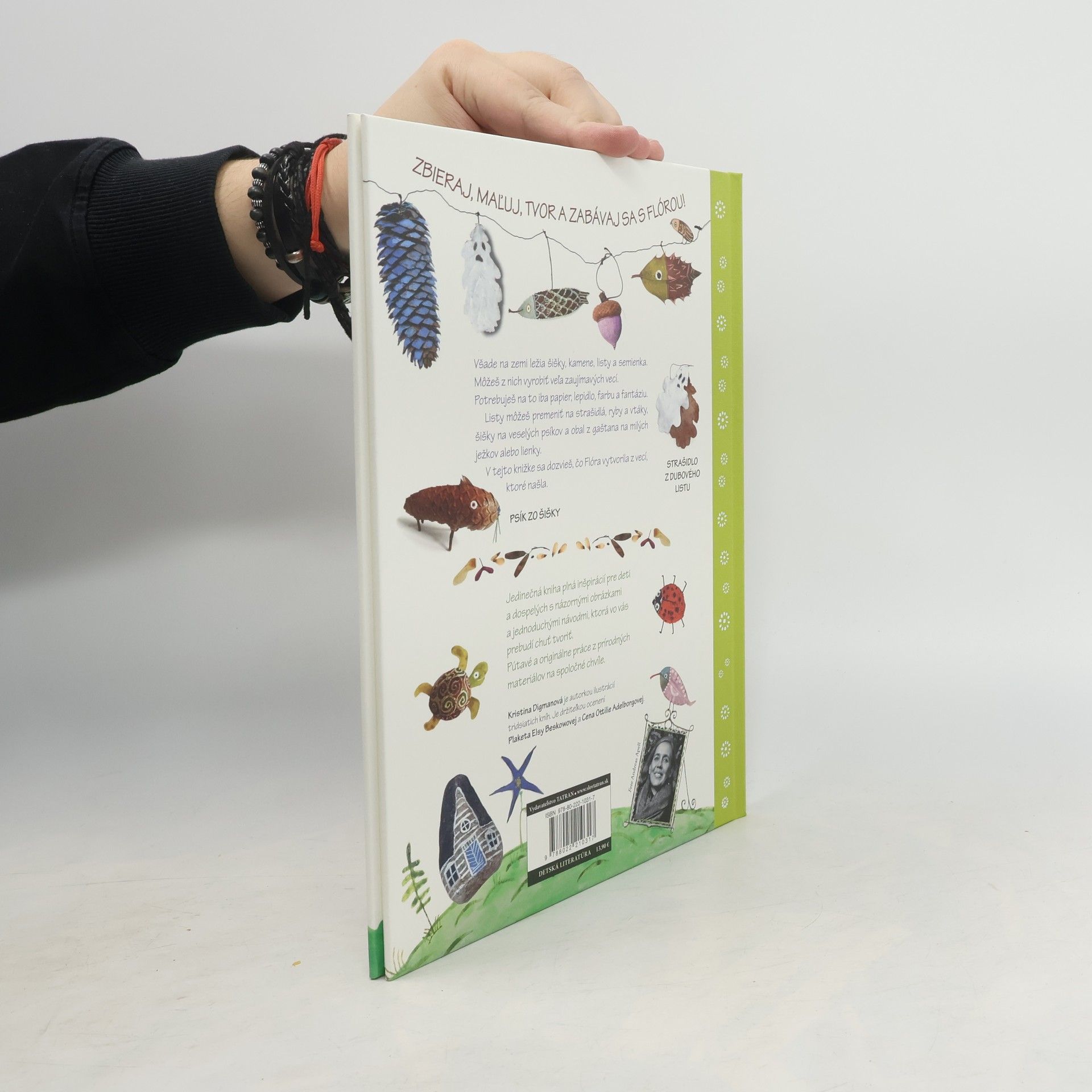 Zbieraj, maľuj, tvor a zabávaj sa s Flórou! Jedinecna kniha plna inspiracii pre deti a dospelych s nazornymi obrazkami a jednoduchymi navodmi, ktora vo vas prebudi chut tvorit. Putave a originalne prace z prirodnych materialov na spolocne chvile. Všade na zemi lezia šišky, kamene, listy a semienka. Môžes z nich vyrobiť veľa zaujímavých vecí. Potrebuješ na to iba papier, lepidlo, farbu a fantáziu. Listy môžeš premeniť na strašidlá, ryby a vtáky, šišky na veselých psíkov a obal z gaštanu na milých ježkov alebo lienky. V tejto knižke sa dozvieš, čo Flóra vytvorila z vecí, ktoré našla. Flóra je mystická postavička, ktorej autorka prisúdila telo dievčatka. Je hrdé na svoje meno, lebo Flóra znamená kvietok. Rado sa potuluje v prírode a uchmatne všetko, čo mu príde pod ruku listy, šišky, semiačka, kamienky, konáriky, mušličky, lupienky. Keď má plné vrecká pokladov, pustí sa do práce a začína kúzliť. Z jaseňového semienka urobí zajačika alebo kvietok, z javorového páva, veveričku, slona alebo vážku, z gaštanov ježkov, zo žaluďov ujov a tety s čapicami, z listov prekrásne rybky, z konárikov hady a z kamienkov domčeky. A vie si vyčarovať aj vlastný svet v kvetináči.