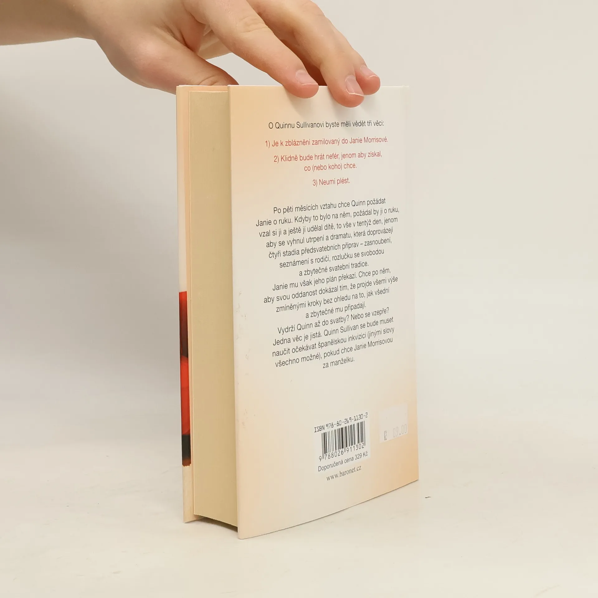 O Quinnu Sullivanovi byste měli vědět tři věci: 1) Je k zbláznění zamilovaný do Janie Morrisové. 2) Klidně bude hrát pod pás, jenom aby získal, co (nebo koho) chce. 3) Neumí plést. Po pěti měsících vztahu chce Quinn požádat Janii o ruku. Kdyby to bylo na něm, požádal by ji o ruku, vzal si ji a ještě jí udělal dítě, to vše v tentýž den, jenom aby se vyhnul utrpení a dramatu, které doprovázejí čtyři stadia předsvatebních příprav – zasnoubení, seznámení s rodiči, rozlučku se svobodou a zbytečné svatební tradice. Janie mu však jeho plán překazí. Chce po něm, aby svou oddanost dokázal tím, že projde všemi výše zmíněnými kroky bez ohledu na to, jak všední a zbytečné mu připadají. Vydrží Quinn až do svatby? Nebo si postaví hlavu? Jedna věc je jistá. Quinn Sullivan se bude muset naučit očekávat španělskou inkvizici (jinými slovy vše neočekávané), pokud chce Janii Morrisovou za manželku.