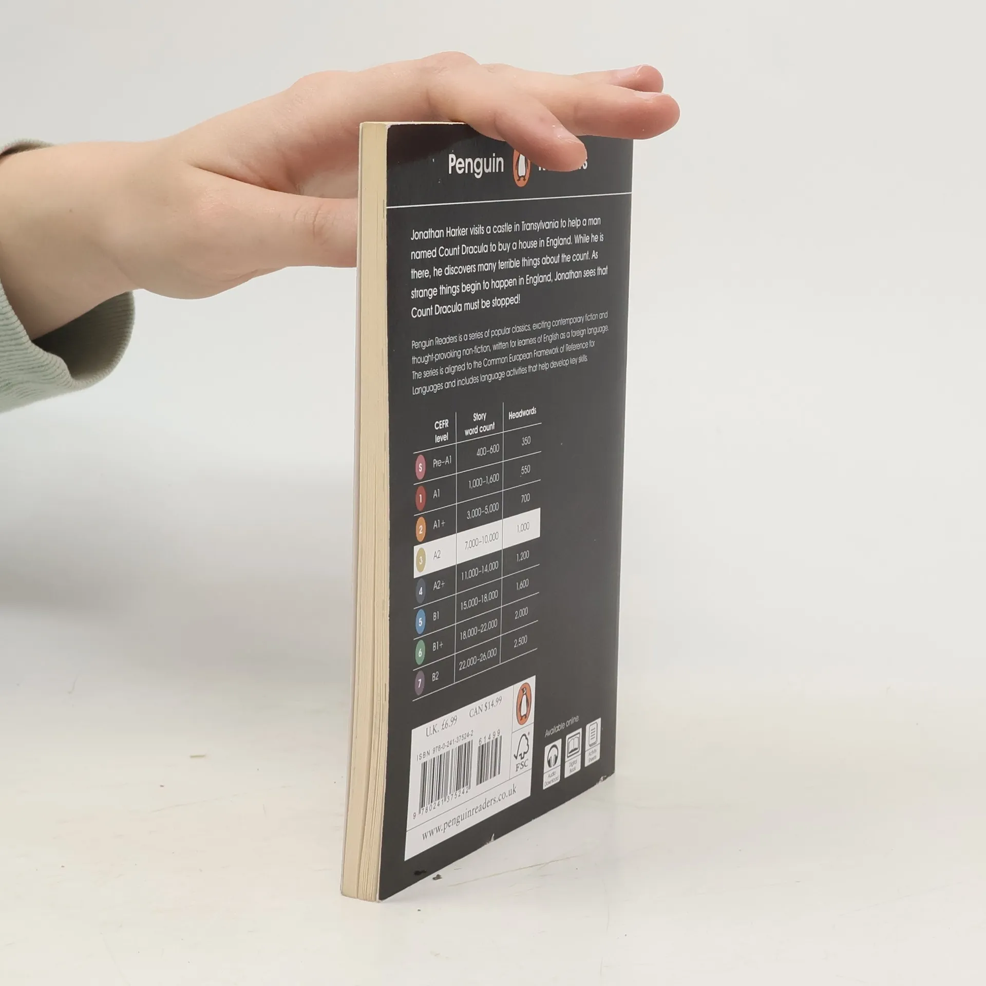 Jonathan Harker visits a castle in Transylvania to help a man named Count Dracula to buy a house in England. While he is there, he discovers many terrible things about the count. As strange things begin to happen in England, Jonathan sees that Count Dracula must be stopped! Penguin Readers is a series of popular classics, exciting contemporary fiction, and thought-provoking non- fiction written for learners of English as a foreign language. Beautifully illustrated and carefully adapted, the series introduces language learners around the world to the bestselling authors and most compelling content from Penguin Random House.The eight levels of Penguin Readers follow the Common European Framework and include language activities that help readers to develop key skills. Dracula, a Level 3 Reader, is A2 in the CEFR framework. The text is made up of sentences with up to three clauses, introducing first conditional, past continuous and present perfect simple for general experience. It is well supported by illustrations, which appear on most pages.