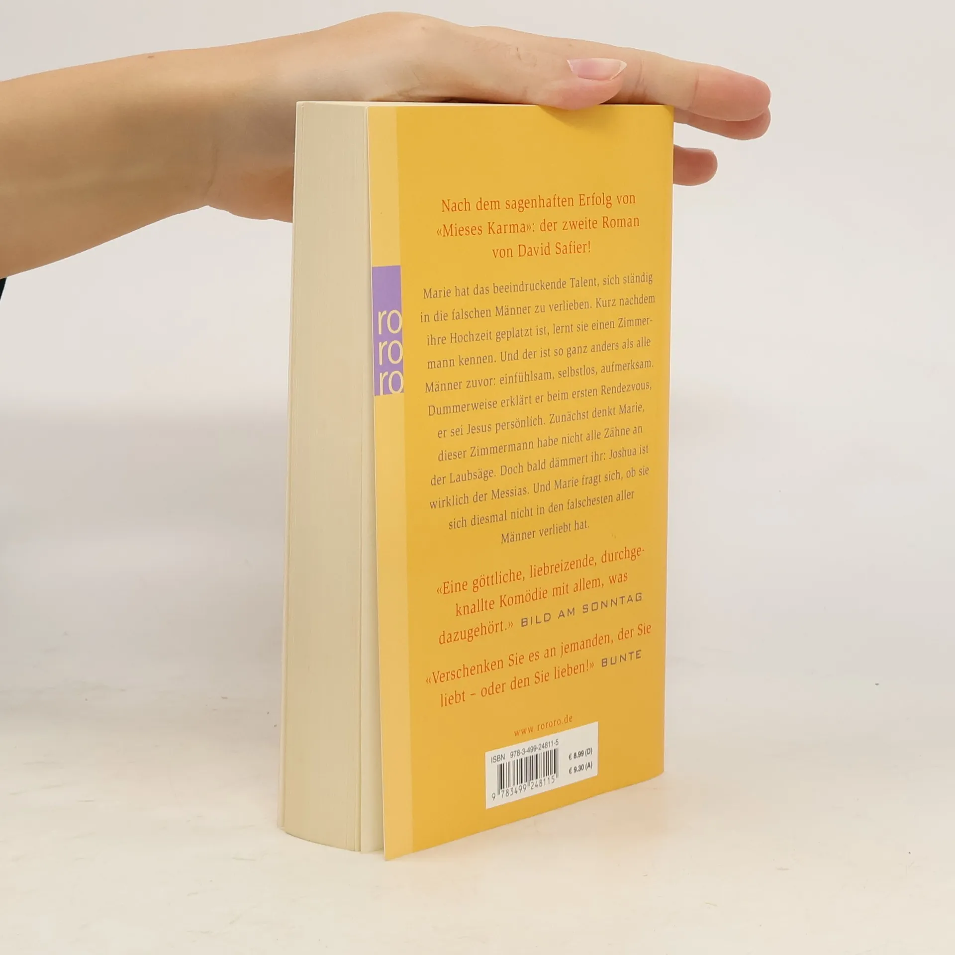 Nach dem sagenhaften Erfolg von «Mieses Karma»: Der zweite Roman von David Safier! Marie hat das beeindruckende Talent, sich ständig in die falschen Männer zu verlieben. Kurz nachdem ihre Hochzeit geplatzt ist, lernt sie einen Zimmermann kennen. Und der ist so ganz anders als alle Männer zuvor: einfühlsam, selbstlos, aufmerksam. Dummerweise erklärt er beim ersten Rendezvous, er sei Jesus persönlich. Zunächst denkt Marie, dieser Zimmermann habe nicht alle Zähne an der Laubsäge. Doch bald dämmert ihr: Joshua ist wirklich der Messias. Und Marie fragt sich, ob sie sich diesmal nicht in den falschesten aller Männer verliebt hat. «Verschenken Sie es an jemanden, der Sie liebt – oder den Sie lieben!» (Bunte)