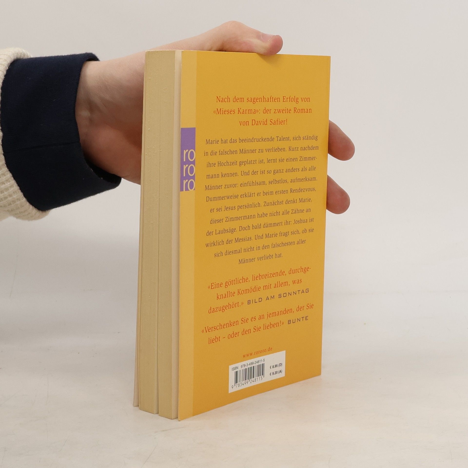 Nach dem sagenhaften Erfolg von «Mieses Karma»: Der zweite Roman von David Safier! Marie hat das beeindruckende Talent, sich ständig in die falschen Männer zu verlieben. Kurz nachdem ihre Hochzeit geplatzt ist, lernt sie einen Zimmermann kennen. Und der ist so ganz anders als alle Männer zuvor: einfühlsam, selbstlos, aufmerksam. Dummerweise erklärt er beim ersten Rendezvous, er sei Jesus persönlich. Zunächst denkt Marie, dieser Zimmermann habe nicht alle Zähne an der Laubsäge. Doch bald dämmert ihr: Joshua ist wirklich der Messias. Und Marie fragt sich, ob sie sich diesmal nicht in den falschesten aller Männer verliebt hat. «Verschenken Sie es an jemanden, der Sie liebt – oder den Sie lieben!» (Bunte)