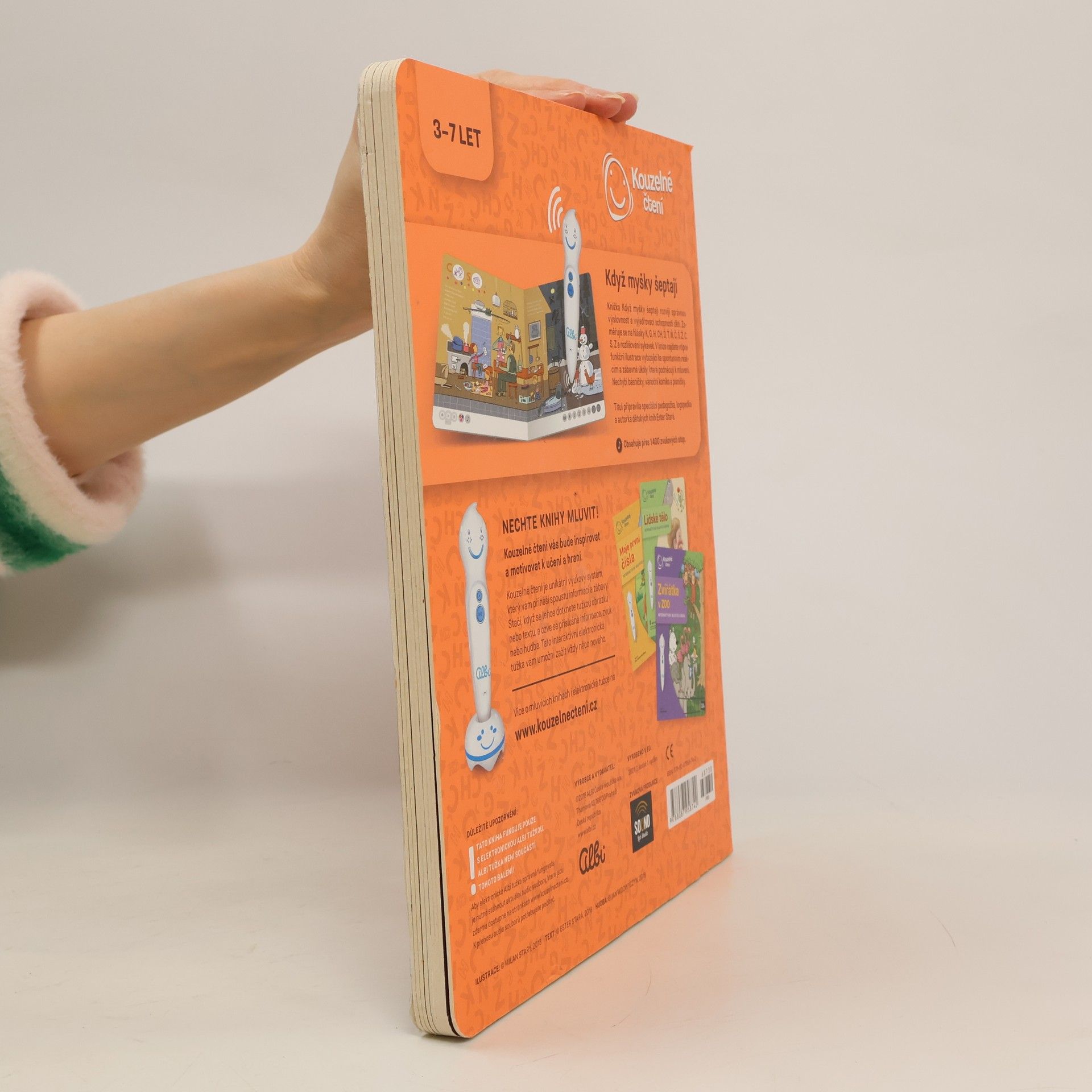 Tato mluvící knížka je zde od toho, aby dětem pomohla rozvázat jejich někdy neposlušné jazyky. Najdete v ní nejen myšky, ale i kouzelníka a plno dalších roztomilých ilustrací. K nim stačí přiložit elektronickou tužku od Albi a začne se přehrávat čtený text. Kromě poslouchání je však k dispozici také spousta dalších interaktivních módů, které dětem zábavnou a veselou formou pomáhají naučit se správně vyslovovat hlásky K, G, H, CH, Ď, Ť, Ň, Č, Š, Ž, C, S a Z, ale například i slabiky bě, pě a vě. Celá tato knížka z edice Kouzelné čtení obsahuje více než 1400 zvuků a textů. Elektronická Albi tužka není součástí knihy. Prodává se samostatně.