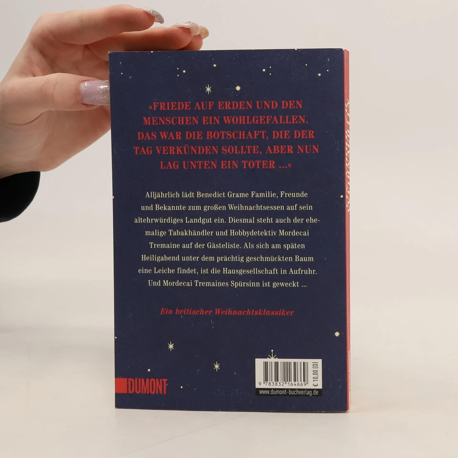 Alljährlich lädt Benedict Grame Familie, Freunde und Bekannte zum großen Weihnachtsessen auf sein kleines britisches Landgut ein. Im Kreise seiner Lieben inszeniert er ein großes Festtagsspektakel. Dieses Jahr steht auch Mordecai Tremaine auf der Gästeliste. Der ehemalige Tabakhändler mit einer Schwäche für Liebesromane hat sich auch als Hobbydetektiv einen Namen gemacht – und ist vom Privatsekretär des Gastgebers beauftragt worden, die Geladenen im Auge zu behalten. Und tatsächlich: Jedes Mitglied dieser illustren Gesellschaft scheint etwas zu verbergen. Mordecai tastet sich durch ein Netz aus Lügen, Untreue, Erpressung und Verrat. Spätestens als um Mitternacht zwischen den Geschenken unter dem Baum eine Leiche liegt, ist ihm klar: Diese Weihnacht wird alles andere als besinnlich. Erstmals 1949 veröffentlicht, ist dieser stimmungsvolle Krimi eine echte Weihnachtswiederentdeckung.