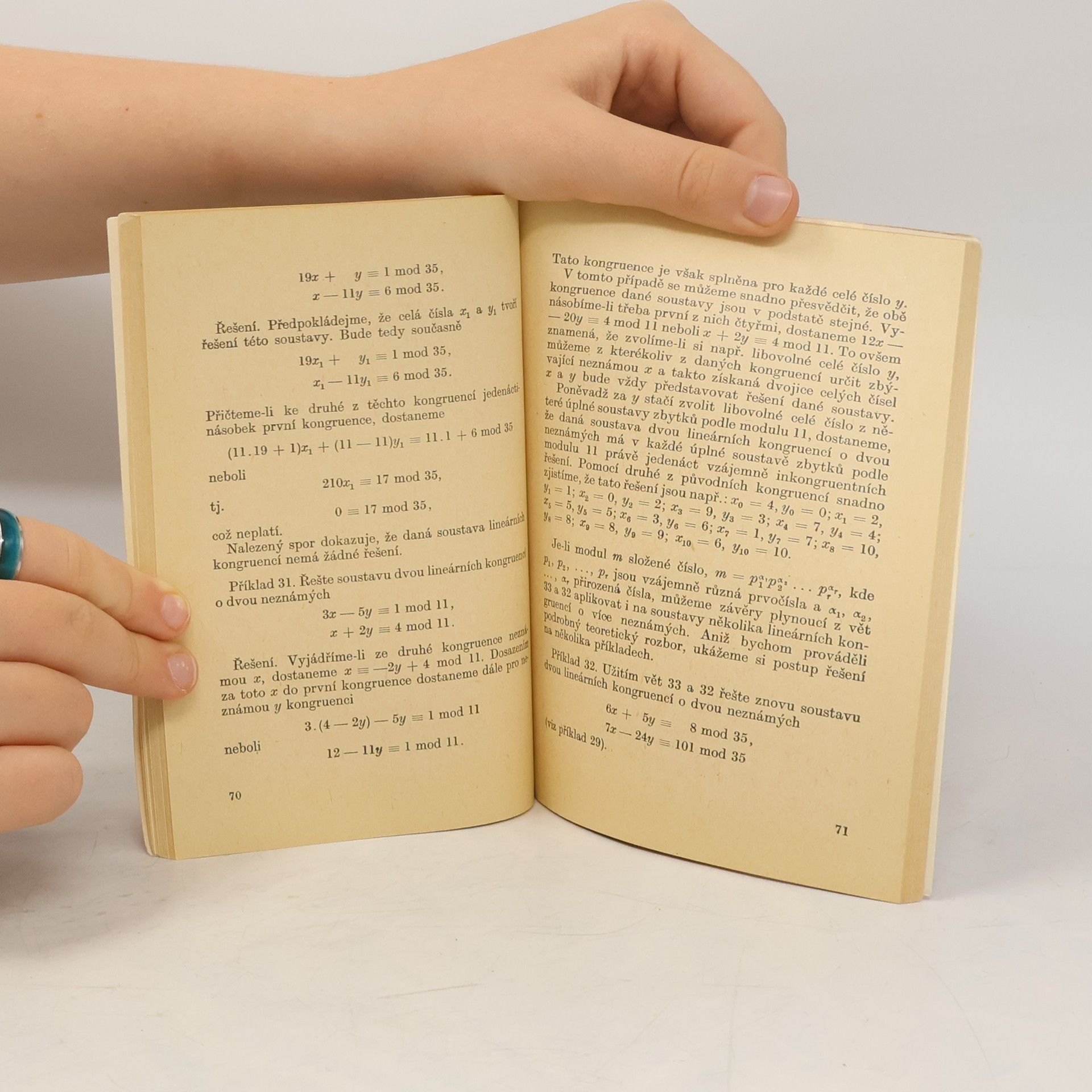 V úvodní kapitole opakuje autor základní pojmy o dělitelnosti čísel. Na ni navazují výklady o kongruencích, jejich vlastnostech, zbytkových třídách a o úplných a redukovaných soustavách zbytků podle určitých modulů. Poté probírá různé druhy kongruencí a jejich soustav a končí kvadratickými kongruencemi s prvočíselným modulem.