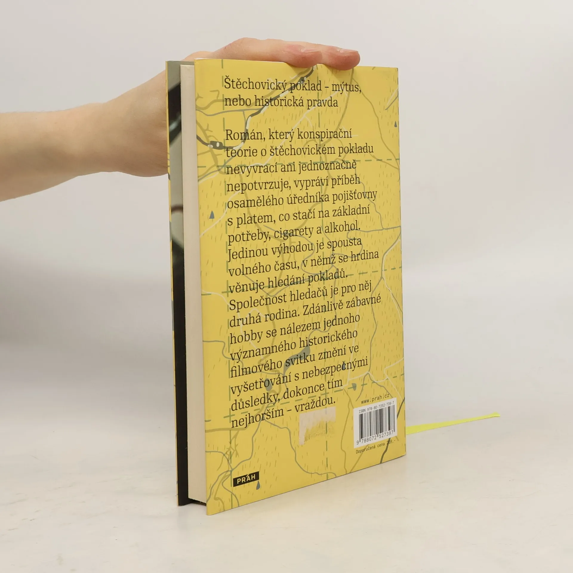 Štěchovický poklad – mýtus nebo historická pravda? Román, který konspirační teorie o štěchovickém pokladu nevyvrací ani jednoznačně nepotvrzuje, vypráví příběh osamělého úředníka pojišťovny s platem, co stačí na základní potřeby, cigarety a alkohol. Jediným jeho výhodou je spousta volného času, v němž se hrdina věnuje hledání pokladů. Společnost hledačů je pro něj druhá rodina. Zdánlivě zábavné hobby se nálezem jednoho významného historického filmového svitku změní ve vyšetřování s nebezpečnými důsledky, dokonce tím nejhorším – vraždou.