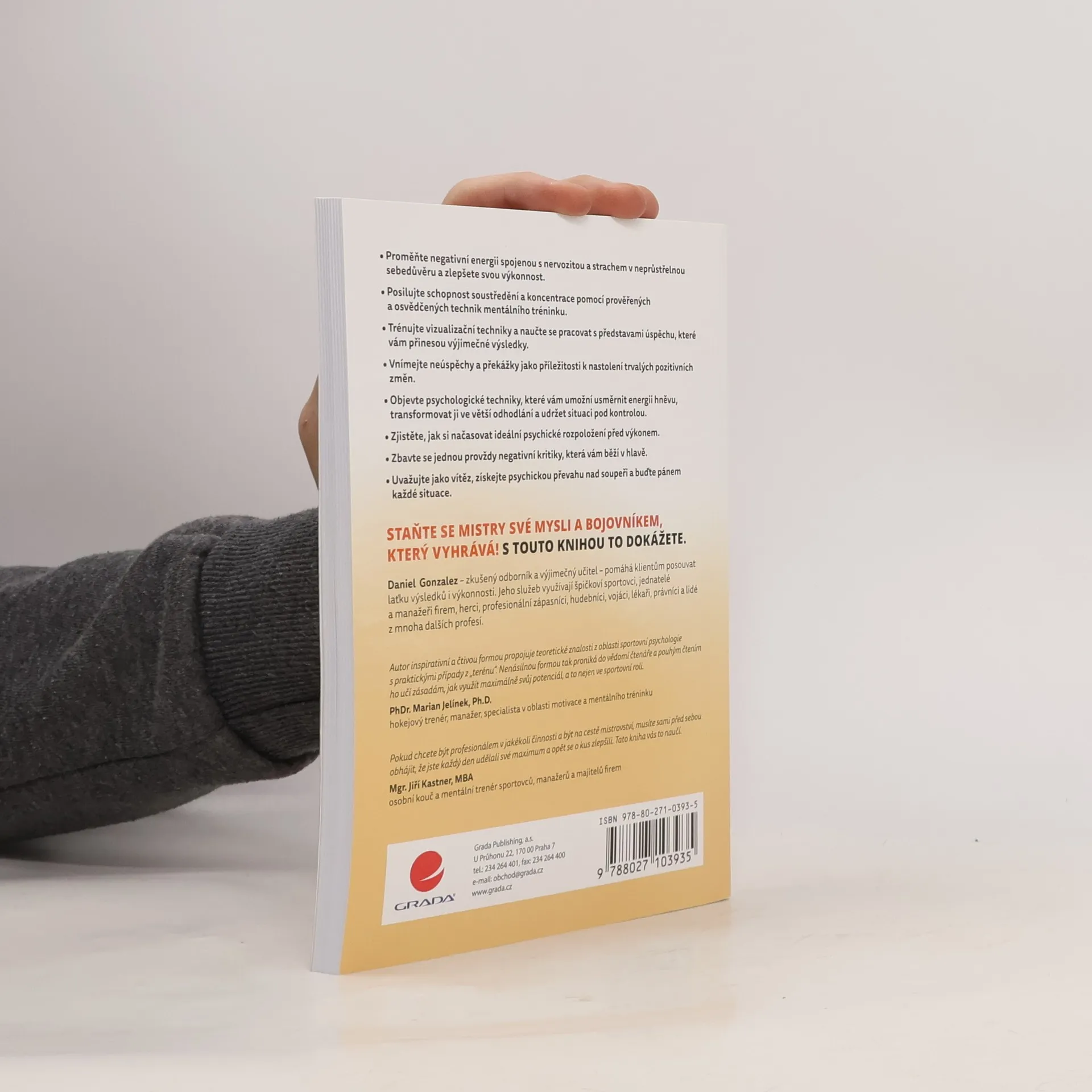 Naučte se díky knize ovládnout svou nervozitu, strach či hněv, zlepšete svou koncentraci, psychiku a výkonnost, naučte se brát neúspěchy a překážky, které nevyhnutelně přicházejí, jako příležitost k nastolení trvalých pozitivních změn, zbavte se negativní kritiky, kterou máte ve své hlavě. Neboť vše, co se odehrává ve vaší hlavě, výrazně ovlivňuje kvalitu vašich výkonů. Ve čtivé a inspirující knize najdete strhující příběhy z autorova života, kdy působil jako pilot námořnictva, federální agent, armádní specialista v oboru kybernetické bezpečnosti, zápasník a držitel černého opasku v brazilském džiu-džitsu nebo výkonnostní trenér. Tyto adrenalinové zážitky vyvažují vzpomínky na starého mistra bojových umění Lea, který svými moudrými radami pomohl autorovi a mnoha sportovcům k výborným výkonům a vítězstvím a jehož prostřednictvím se čtenář seznamuje se základními principy mentálního tréninku a ovládání mysli. Staňte se mistry své mysli a vítězi!