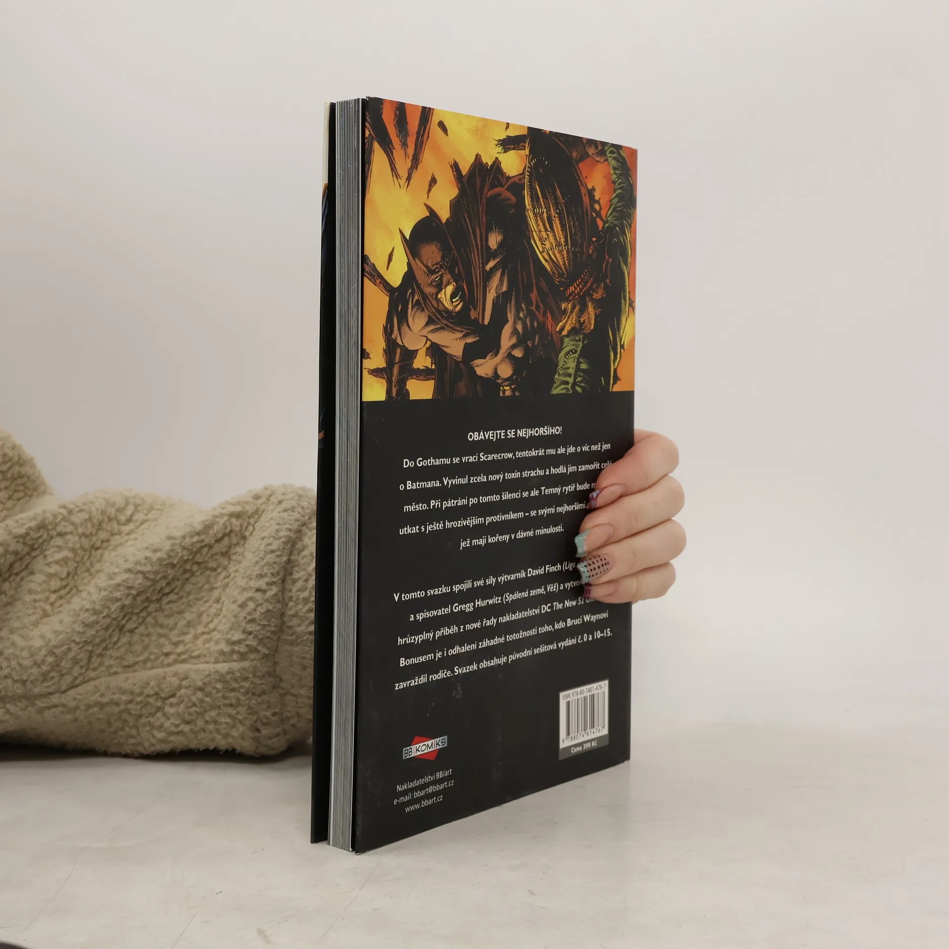 Není čeho se bát… jen samotného pána strachu. Rozsévat strach do srdcí zločinců, to batman ovládá na výbornou. Nyní se ale ve stínech Gotham City ukrývá kdosi ještě strašlivější. Někdo, kdo unáší děti a provádí na nich hrůzyplné pokusy, po nichž zůstávají jako tělo bez duše. Temný rytíř musí vypátrat nejděsivějšího ze svých nepřátel, Scarecrowa. Na této cestě se bude muset utkat s ještě hrozivějším protivníkem – se sebou samým a se svou temnou minulostí. Co všechno je Bruce Wayne ochoten obětovat, aby své město zachránil před dosud nejničivějším útokem? Podaří se mu odhalit tajemství Scarecrowovy minulosti a zastavit tak neúprosný koloběh násilí? K tomu podnikneme cestu zpět časem do dob, než se Bruce Wayne stal Batmanem. Spolu s ním budeme pátrat po tom, kdo mu zabil rodiče, po muži jménem Joe Chill.