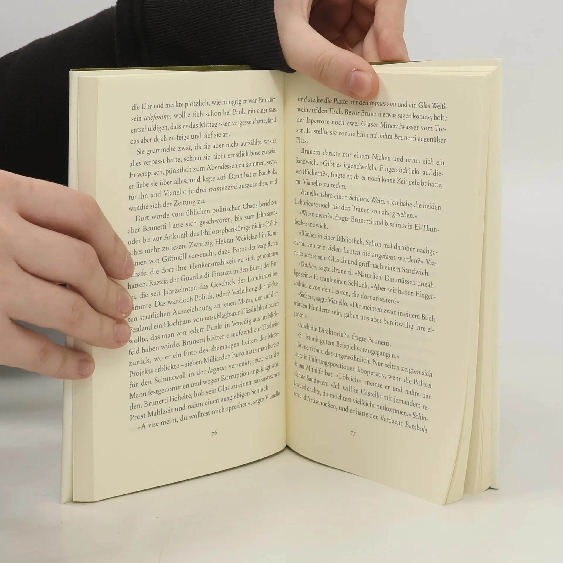 Brunetti auf der Jagd nach Raritäten: Der Commissario wird zu einem ungewöhnlichen Tatort gerufen, der altehrwürdigen Biblioteca Merula. Wertvolle Folianten liegen aufgeschlitzt da, und der amerikanische Forscher, der ein Dauergast war, ist verschwunden. In Venedig, das einst auch eine florierende Bücherstadt war, entdeckt Brunetti eine eigenartige Welt: einen florierenden Schwarzmarkt für Bücher.