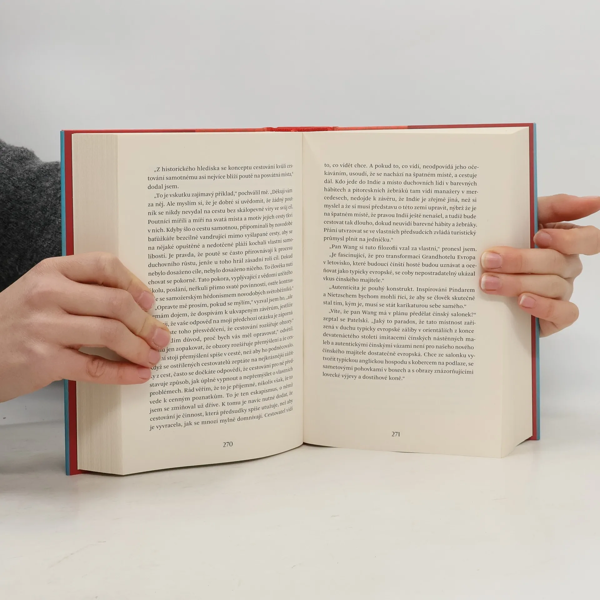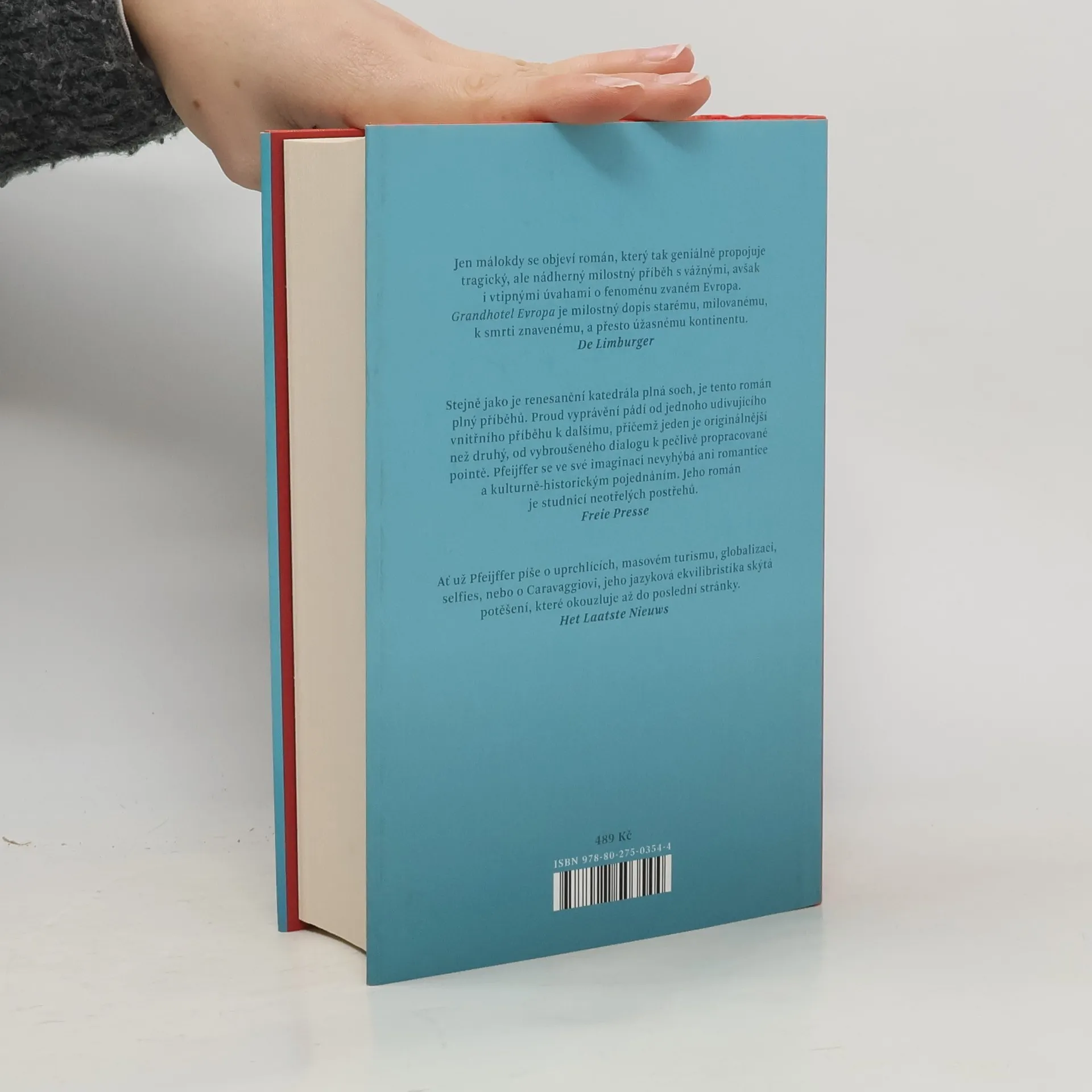 Román o starém kontinentu, který je tak nabitý minulostí, že už v něm nezbývá místo pro budoucnost Známý spisovatel přijíždí do Grandhotelu Evropa, aby se zde psaním románu vypořádal se ztroskotáním svého osudového vztahu. Kdysi přepychový hotel pomalu chátrá, stejně jako v autorových očích upadá i mocný a skvostný stejnojmenný kontinent, který se v posledních letech stal skanzenem a lunaparkem pro turisty. Zatímco hrdinové románu pátrají po posledním Caravaggiově obrazu a cestují do nejrůznějších koutů světa, Grandhotel Evropa zaplavují turisté z Číny. Ilja Pfeijffer se v košatém vyprávění plném historických a literárních odkazů zamýšlí nad migrací, sexem i uměním a ilustruje, jak se Evropa i zbytek světa mění pod náporem globalizace a masového turismu.