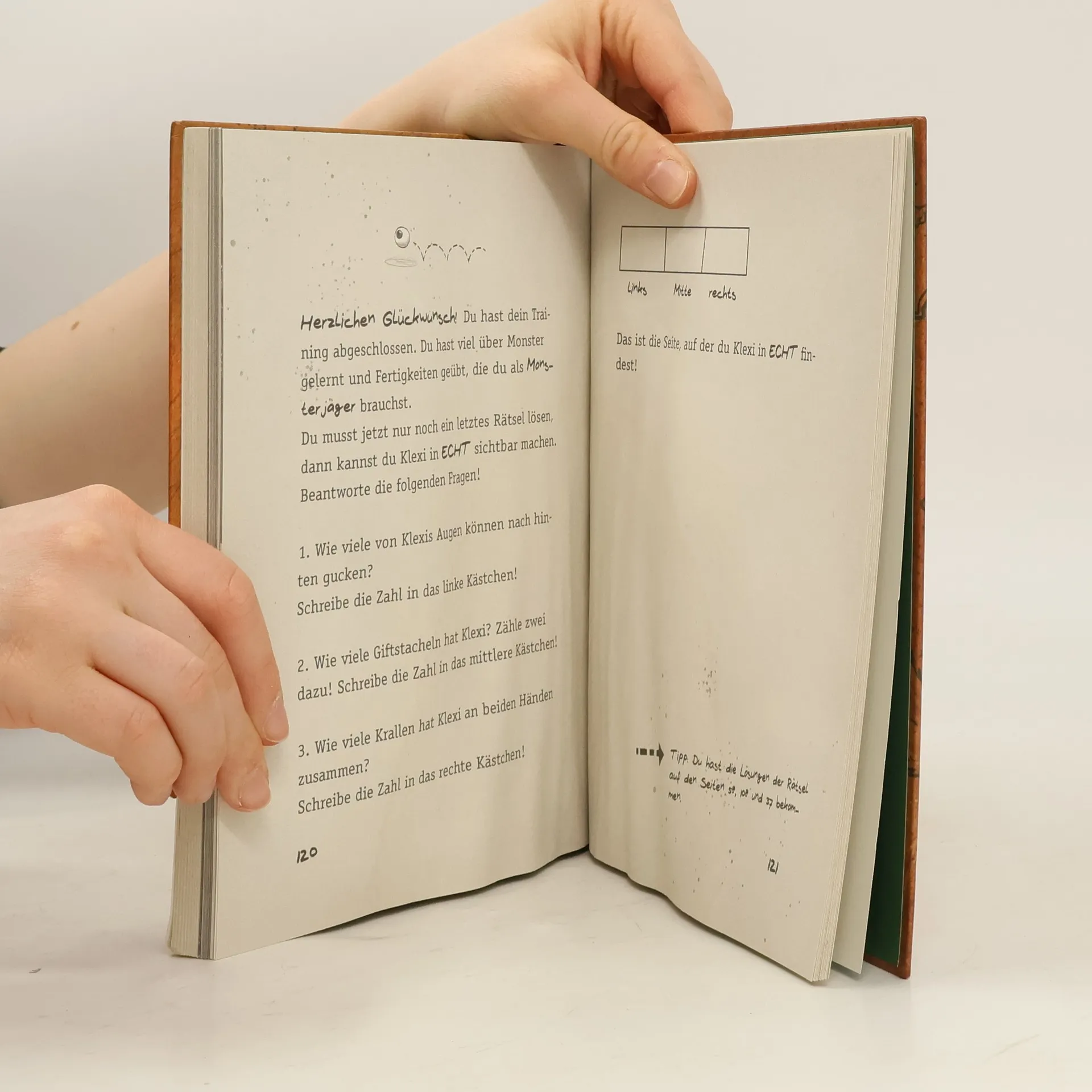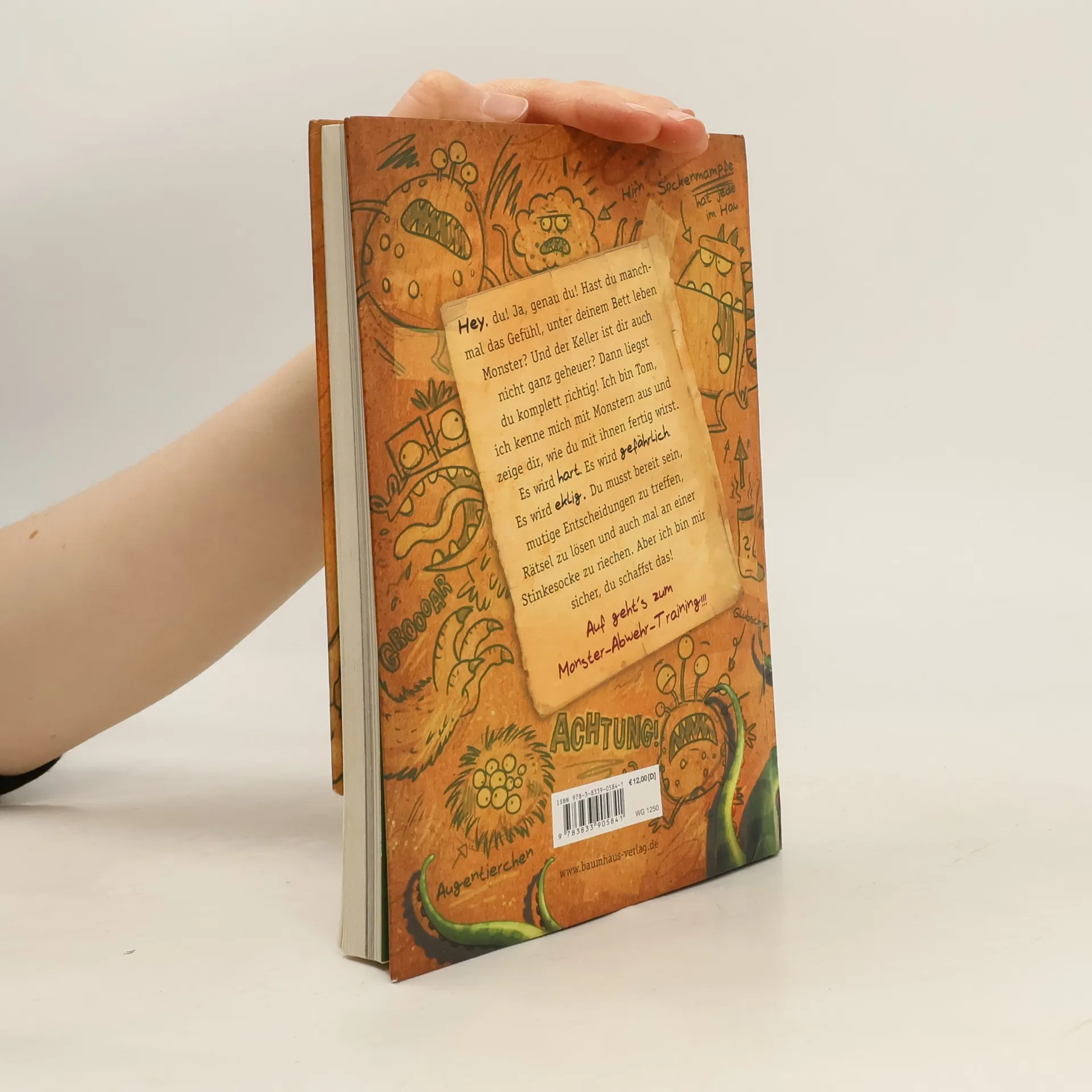 Hallo! Schön, dass du mir helfen willst. Ich heiße Tom Rens und bringe dir bei, wie man Monster fängt. Denn es gibt sie überall: Sie lauern unterm Bett, verkriechen sich in Mülleimern oder verstecken sich im Keller. Selbst in diesem Buch verbirgt sich eins! Und wenn du nicht aufpasst, beißt es dir in die Finger. Aber keine Angst, ich zeige dir, wie man es einfängt. Und wenn du mutig genug bist, kannst du es am Ende unseres Trainings stellen und zeigen, ob ein echter Monsterjäger in dir steckt!