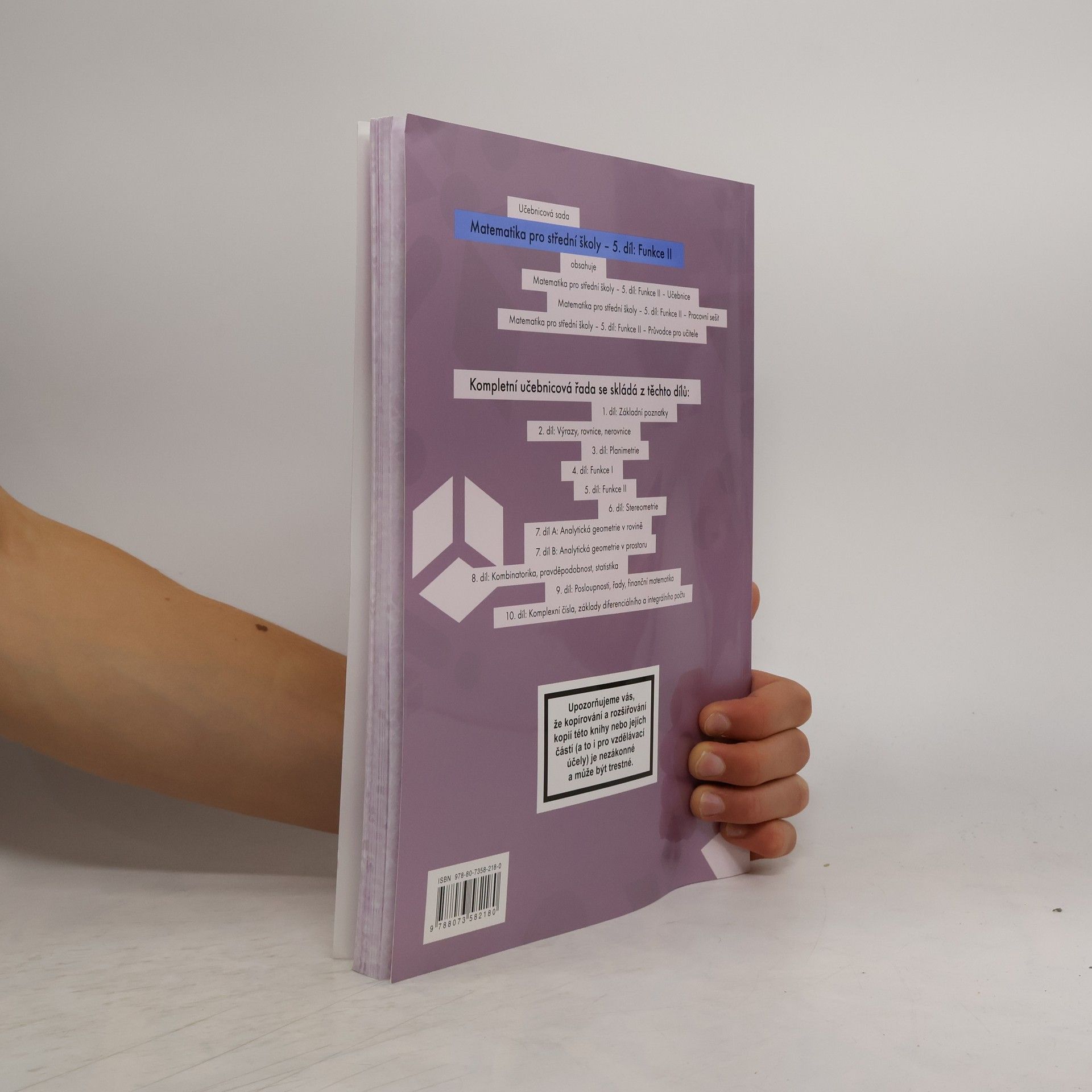 There are currently of book Matematika pro střední školy. 5. díl, Funkce II. Pracovní sešit (2015) in stock.