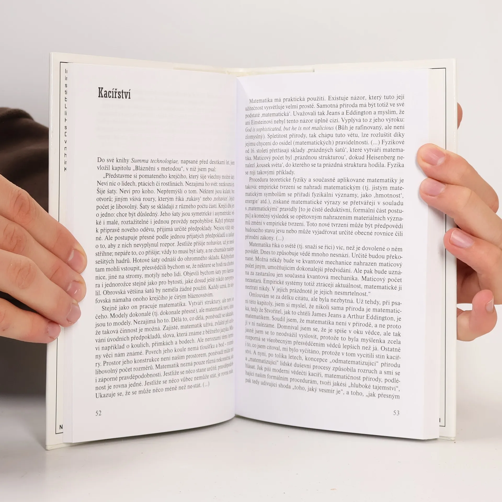 Kniha proslulého polského autora je souborem esejů zamýšlejících se nad současností a budoucností vědy, jejími přednostmi a riziky. Zabývá se otázkami teorie informace, kybernetiky, genetiky a jejich možnostmi. Čtenář se dozví o rozdílu mezi člověkem a strojem, teoretických možnostech kybernetiky, možnosti kybernetického modelování biologických jevů, výhledem umělé inteligence, technickém napodobování živých bytostí, konkurenčních možnostech kybernetiky, negativních důsledcích významných objevů apod. Přeložil Pavel Weigel.