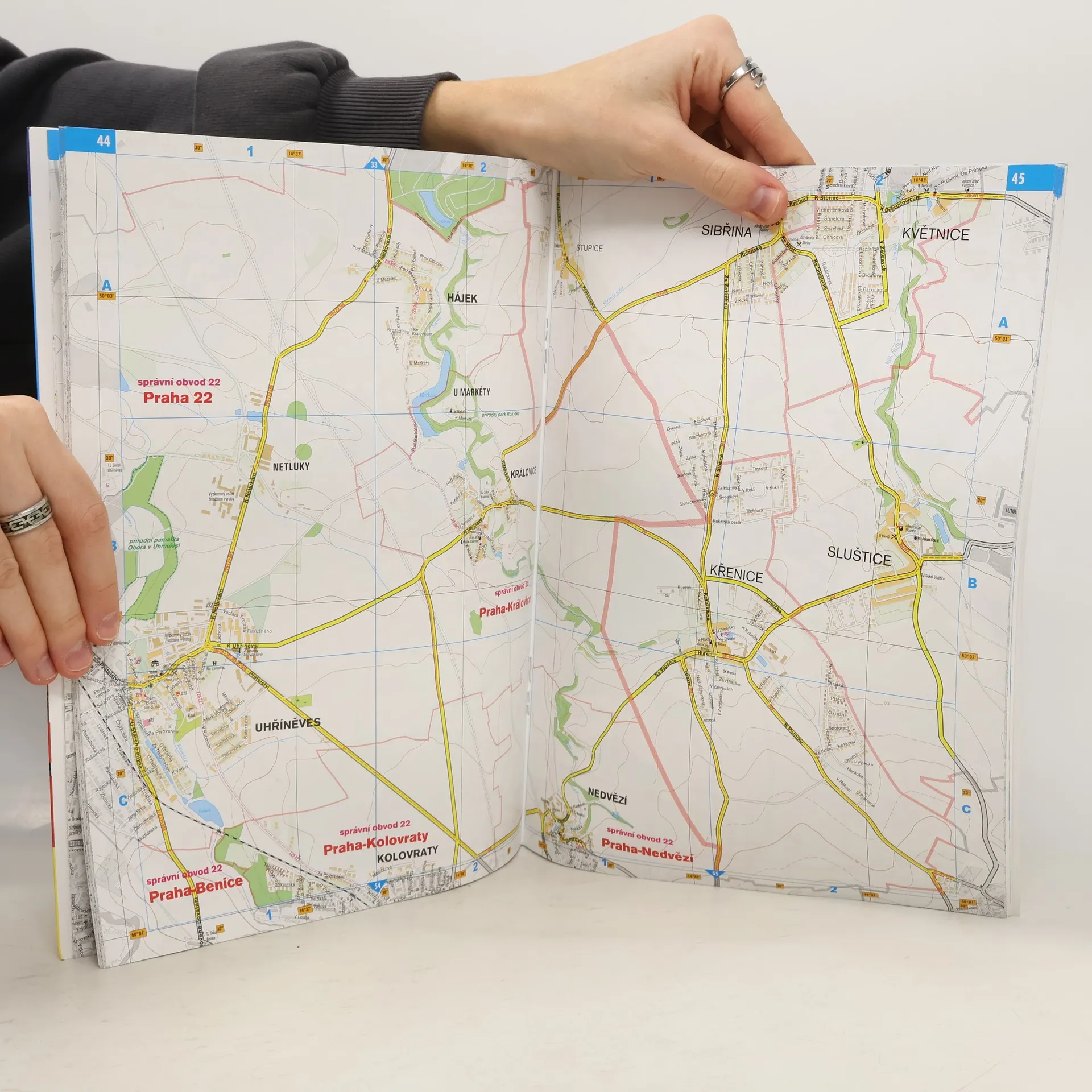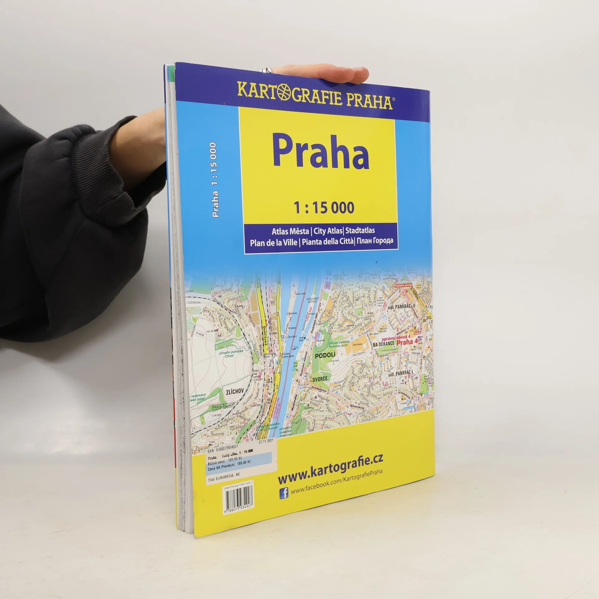Největší výhodou tohoto atlasu je jeho velký formát 23 x 32 cm, který umožňuje vměstnat celé území Prahy na pouhých 26 dvoustran ve velmi podrobném měřítku 1 : 15 000. V mapách jsou přehledně zpracovány všechny ulice, zástavba, včetně čísel orientačních, hranice městských částí a čtvrtí a také detailní turistický a tematický obsah zahrnující kulturní a historické body zájmu, úřady, městskou dopravu a mnoho dalšího. Centrum města má vyhrazenu zvláštní dvoustranu v detailním měřítku 1 : 10 000. Klad listů i legenda jsou umístěny na obálce s praktickou chlopní, která může sloužit i jako záložka. Kromě nezbytného rejstříku ulic a ostatních názvů atlas ještě doplňují přehledná mapa Prahy pro motoristy, aktuální plán metra a tramvajové dopravy a praktické kontakty. •52 velkých mapových stran pokrývá území celé Prahy •přehledný a čitelný plán 1 : 15 000 •podrobný plán centra města 1 : 10 000 •změny v pražské MHD k 1. 9. 2016 •mapa pro motoristy s parkovišti P+R •rozdělení Prahy na městské části •rejstřík ulic a ostatních názvů •důležité kontakty •schéma metra a tramvají •praktická obálka s chlopní