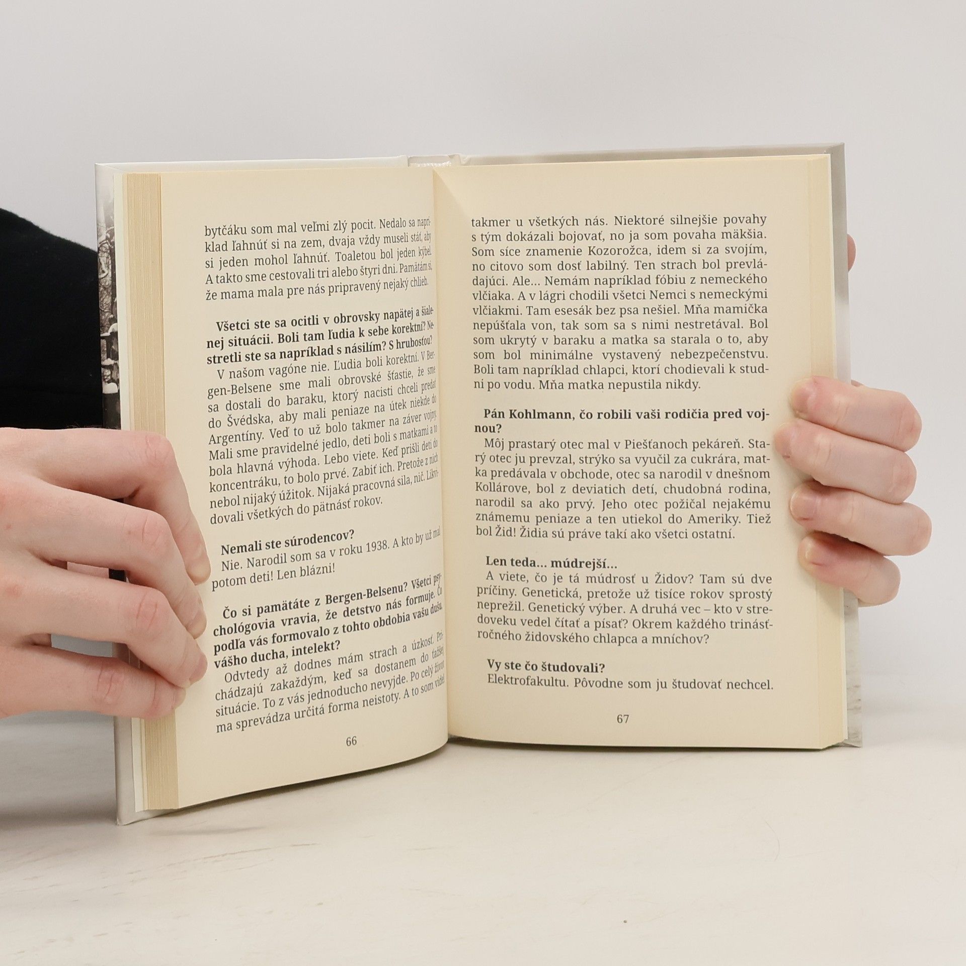 Žijú medzi nami. Prežili holokaust. Mnohí sa s tým čiastočne vyrovnali, ale spomienky vždy vyvolajú silné emócie. Niektorí stratili rodinu, domov, iní vieru aj ilúzie o tomto svete. Čím všetkým si prešli sa asi nedozvieme. V rozhovoroch s ľuďmi čo prežili holokaust Ivana Havranová zaznamenala aspoň časť z ich spomienok.