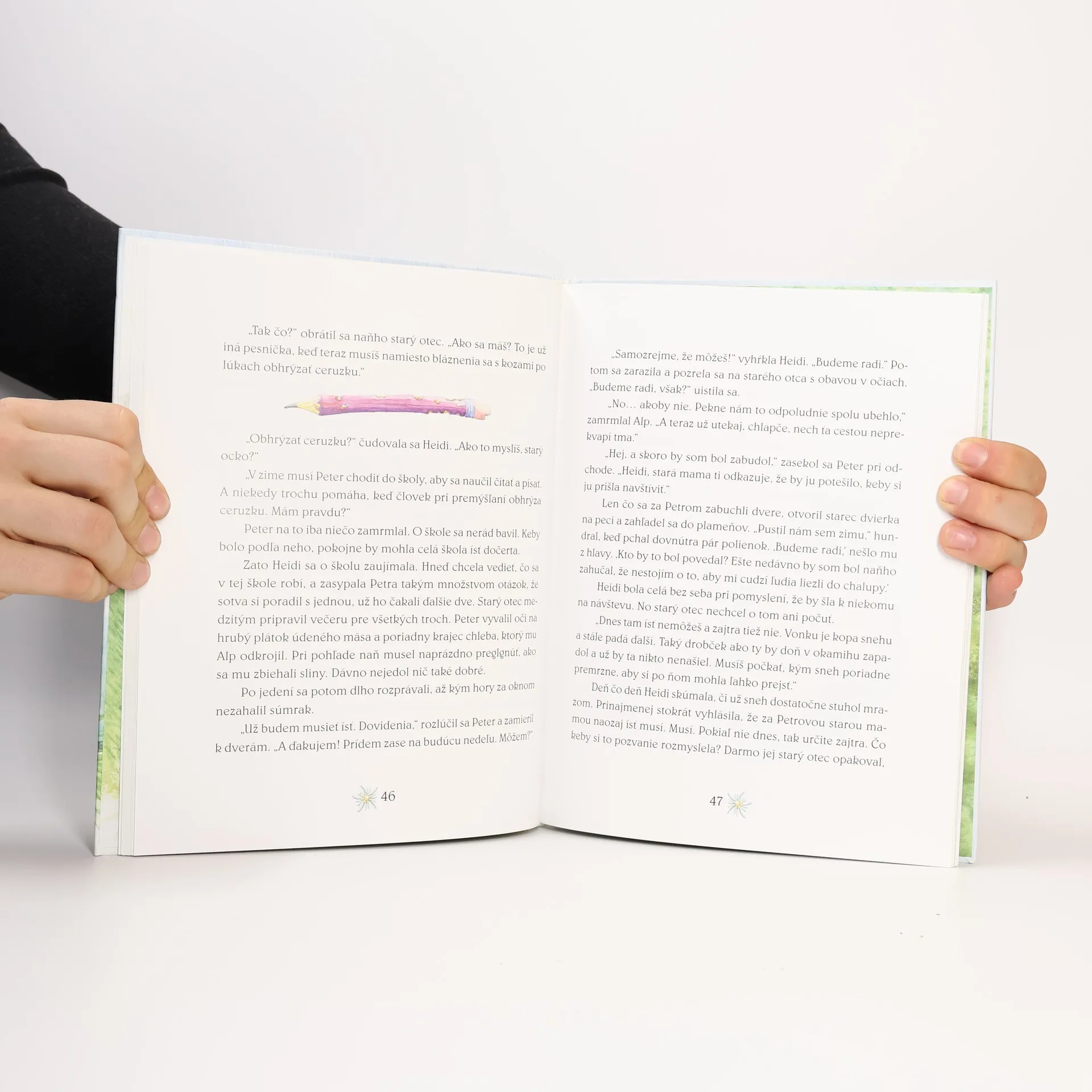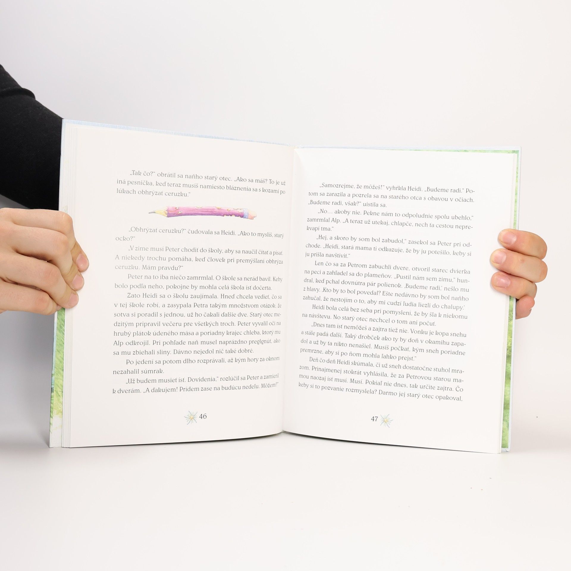 Očarujúci dojemný príbeh Johanny Spyriovej o dievčatku Heidi pozná celý svet. Hoci autorka ho napísala pred viac než sto rokmi, stále je živý. Pre dnešné deti ho s pochopením a láskou prerozprávala Jitka Škápíková. Heidi stratila obidvoch rodičov a nemá sa o ňu kto starať. Najbližší príbuzný je jej starý otec, ktorý žije vysoko v horách. Drsná alpská príroda a dlhoročná samota však spôsobili, že je z neho široko-ďaleko vyhlásený mrzút. Keď teta Deta privedie k nemu Heidi, starec rozhodne nadšením neoplýva. Čo si počne s dieťaťom? Ani pre mestské dievčatko nie je jednoduché zvyknúť si na nový život a na mrzutého starého deda... (Quelle: Website des Verlags).