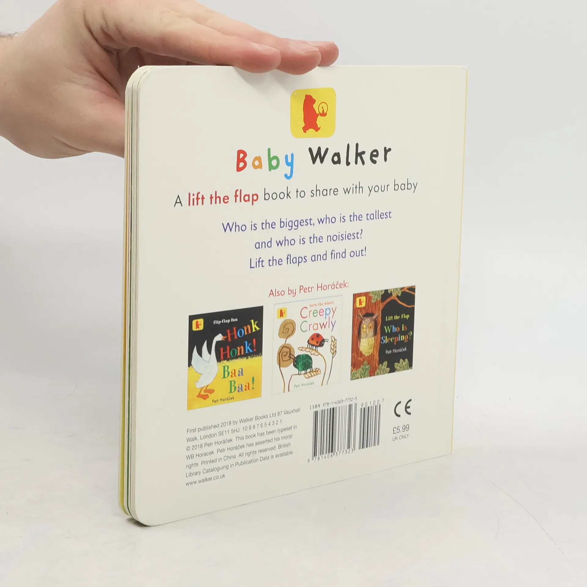 A colourful lift-the-flap book of opposites to share with your baby. Who is the biggest, who is the tallest and who is the noisiest? Lift the flaps and find out in this colourful board book from acclaimed author/illustrator Petr Horacek.
