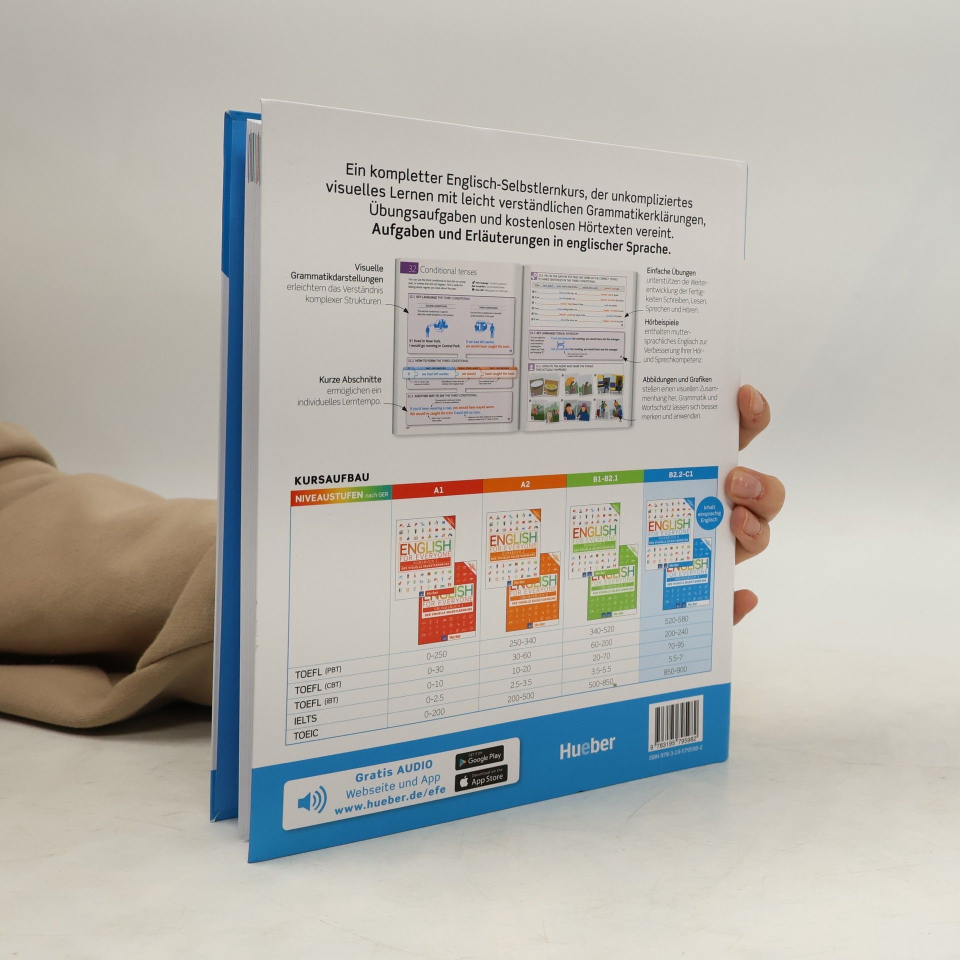 Niveau B2/2 bis C1 Mit dem visuellen Kursbuch für Erwachsene aus der Reihe English for Everyone können Sie sich Englisch ganz leicht selbst beibringen. Sie erlernen Sprachstrukturen, Grammatik und Wortschatz mit sehr anschaulichen Grafiken, Übersichten und Illustrationen. Die kurzen Erklärungen und Übungsanweisungen sind in Deutsch. Alle Hörübungen können Sie ganz einfach per App oder online abspielen. Der Kurs ist auch sehr gut zur Vorbereitung auf die Sprachtests TOEFL, TOEIC und IELTS geeignet.