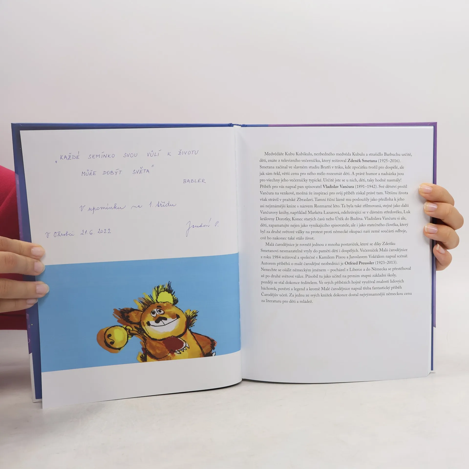 Kubula a Kuba Kubikula: Rok 1. vydání orig. 1931 Veselé příhody medvědáře Kuby Kubikuly, jeho medvěda Kubuly a podivného medvědího strašidla Barbuchy na jejich toulkách světem. Roztomilý příběh medvědáře a medvěda patří již mezi klasiku české literatury pro děti. Ani po letech od svého prvního vydání neztratil nic ze svého kouzla, osobitosti a vtipu, a tak by neměl chybět v žádné dětské knihovničce. Připomeňme si jen, že vypráví o medvědáři Kubovi Kubikulovi a jeho nezbedném medvědovi Kubulovi, se kterým se toulal po světě a kterého strašil strašidlem Barbuchou. Veselé vyprávění o malé čarodějnici, která se učí čarovat, aby se mohla stát správnou a dobrou čarodějnicí. Malá čarodějnice: Rok 1. vydání orig. 1957 Hluboko v lese v kouzelnickém domku bydlela malá čarodějnice s kamarádem havranem Abraxasem. Každý den strávila několik hodin nad kouzelnickou knihou a učila se čarovat. Chtěla si získat úctu starých čarodějnic. Po počátečním nezdaru se jí to nakonec podařilo a ona sama vyzrála na všechny čarodějnice na světě. Příběh je známý z televizního večerníčku.