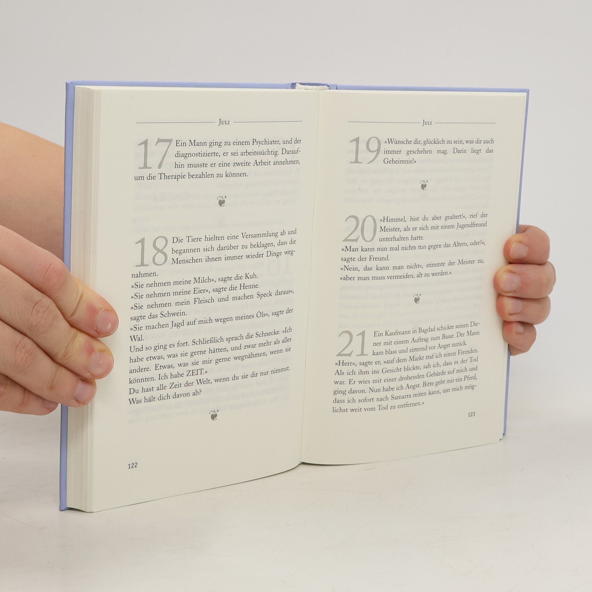 Offen sein für Überraschungen und Wunder. Das Staunen nicht verlernen und aufwachen zum Wesentlichen. Anthony de Mello, weltweit bekannter spiritueller Meister, inspiriert in Texten voll Charme und Humor, auf die Stimme einer Weisheit zu hören, die in allen Kulturen zu Hause ist und die tief im Herzen eines jeden einzelnen ihren Widerhall finden kann. Jenseits von Hektik und Routine: kurze Geschichten, die jedem Tag mehr Leben geben. Als Aufweck-Impuls sind die Texte dieses Buches gedacht: Dass jeden Tag nur ein Text zu lesen und zu meditieren ist, liegt durchaus in Anthony de Mellos Sinn. Er selbst hat die homöopathischen Dosierung empfohlen. Und seine Texte sind tatsächlich kurz. Aber sie brauchen ihre Zeit, verlangen Übung. Damit sie wirken können, sollte man sich regelmäßig und immer wieder zurückholen von der Ablenkung des Alltags. Diese Zeit sollte man sich jeden Tag gönnen - auf die Länge einer Pause, die der Seele gut tut. Man sollte sich freilich wirklich auf seine Texte einlassen. Es sind keine Instant-Geschichten, zum schnellen und unterhaltsamen Konsum so nebenbei. Eben eher Wahrheiten wie der Blitz, der irritiert, wachmacht und alles auf einmal erleuchtet. Was de Mello sagt, ist ernst gemeint, aber nicht ohne entspannten Humor: Versuche, dem Geheimnis deines Lebens auf den Grund zu gehen. Aber mach dich nicht lächerlich, indem du dir als Besitzer der ewigen Wahrheit vorkommst, so als hättest du sie fest in der Hand. Die hier gesammelten Texte wollen auch diesen Humor de Mellos zeigen und die erlösende Leichtigkeit vermitteln, die die Seele aufatmen lässt. Nicht alles ist so ernst und erdenschwer, wie es zunächst scheint.