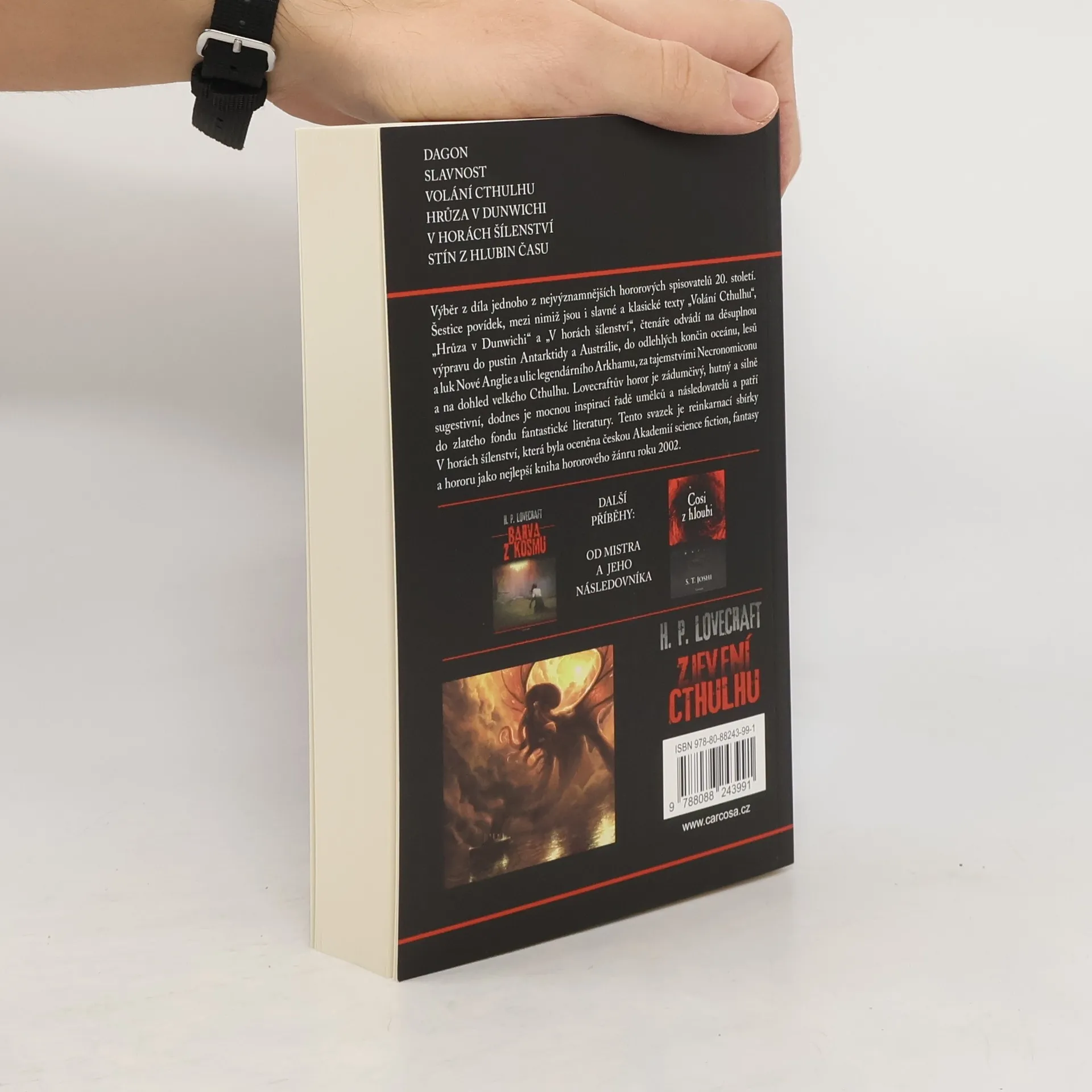 Výběr z díla jednoho z nejvýznamnějších hororových spisovatelů 20. století. Šestice povídek, mezi nimiž jsou i slavné a klasické texty „Volání Cthulhu“, „Hrůza v Dunwichi“ a „V horách šílenství“, čtenáře odvádí na děsuplnou výpravu do pustin Antarktidy a Austrálie, do odlehlých končin oceánu, lesů a luk Nové Anglie a ulic legendárního Arkhamu, za tajemstvími Necronomiconu a na dohled velkého Cthulhu. Lovecraftův horor je zádumčivý, hutný a silně sugestivní, dodnes je mocnou inspirací řadě umělců a následovatelů a patří do zlatého fondu fantastické literatury. Tento svazek je reinkarnací sbírky V horách šílenství, která byla oceněna českou Akademií science fiction, fantasy a hororu jako nejlepší kniha hororového žánru roku 2002. Obsah: Dagon, Slavnost, Volání Cthulhu, Hrůza v Dunwichi, V horách šílenství, Stín z hlubin času