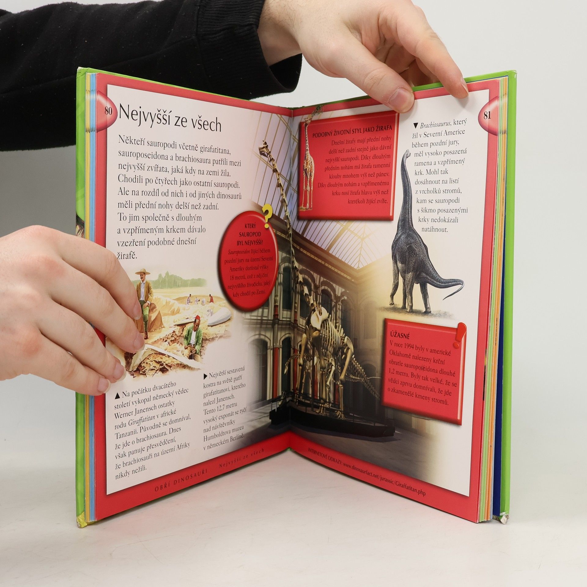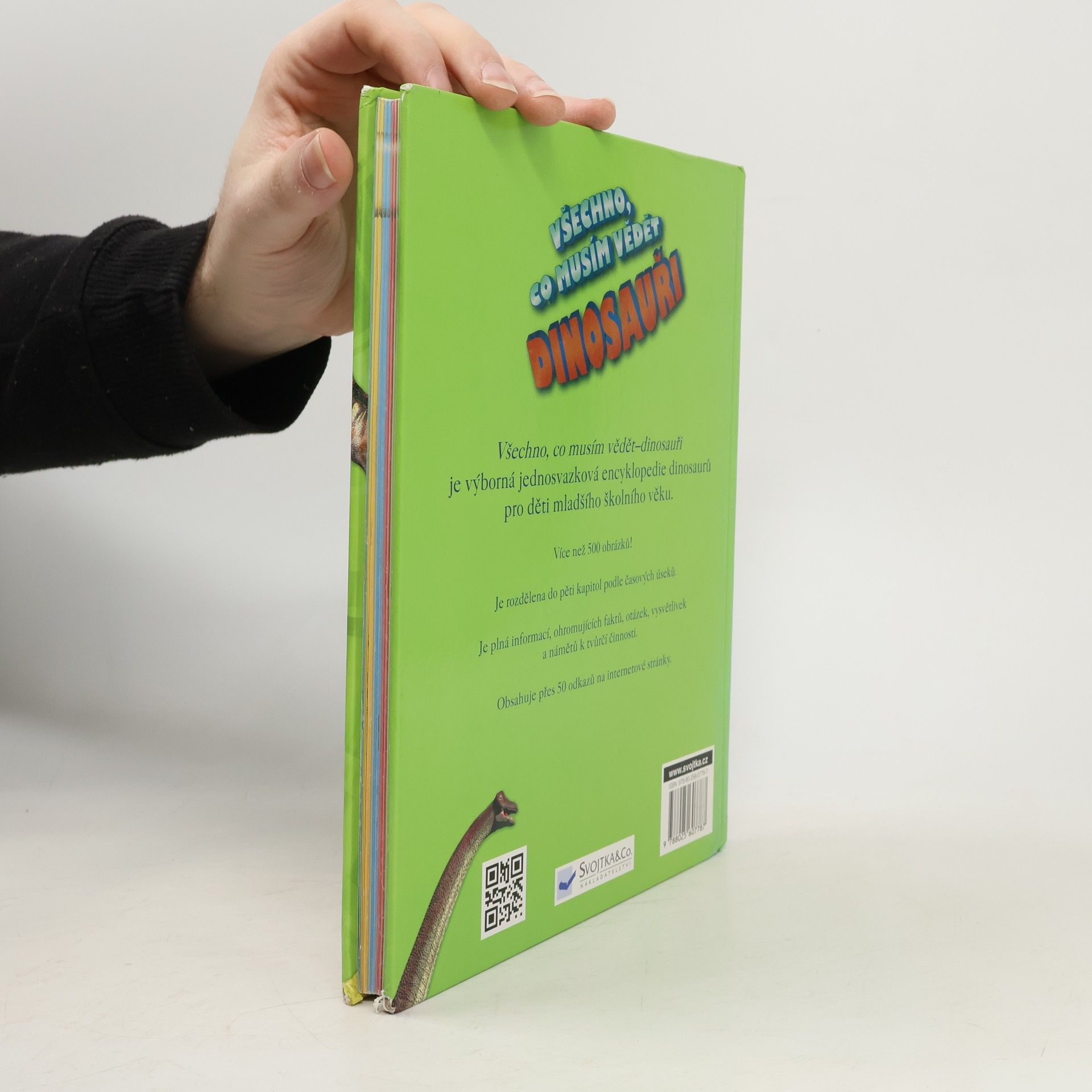 Tato jednosvazková encyklopedie dinosaurů je určena pro děti mladšího školního věku. Je rozdělena do pěti kapitol podle časových úseků a spolu se spoustou informací obsahuje i mnoho vtipných nápadů, které malé čtenáře jistě zaujmou a pobaví. Jsou tu úžasná fakta, slovníčky vysvětlující význam různých pojmů, důležité otázky a fascinující odpovědi i různé zajímavé činnosti. Najdete v ní přes 50 odkazů na internetové stránky a více než 500 obrázků. Užijte si spolu se svými dětmi objevnou cestu světem dinosaurů!