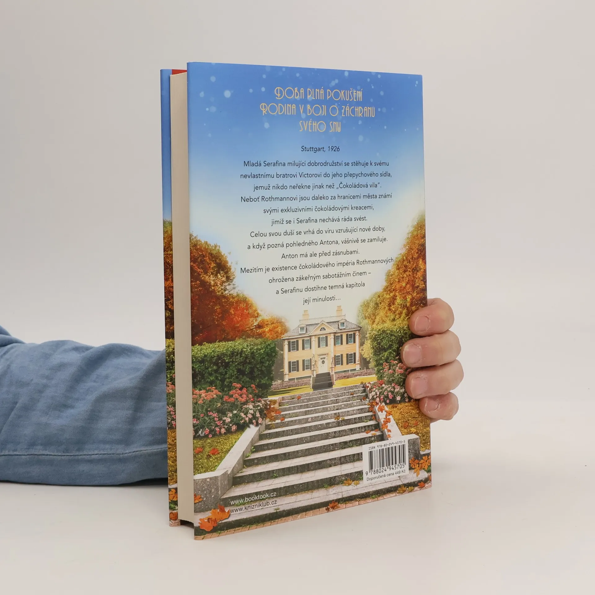 DOBA PLNÁ POKUŠENÍ. RODINA V BOJI O ZÁCHRANU SVÉHO SNU. Stuttgart, 1926. Mladá Serafina milující dobrodružství se stěhuje k svému nevlastnímu bratrovi Victorovi do jeho přepychového sídla, jemuž nikdo neřekne jinak než „Čokoládová vila“. Neboť Rothmannovi jsou daleko za hranice města známí svými exkluzivními čokoládovými kreacemi.Celou svou duší se vrhá do víru vzrušující nové doby, a když pozná pohledného Antona, vášnivě se zamiluje. Anton má ale před zásnubami. Mezitím je existence čokoládového impéria Rothmannových ohrožena zákeřným sabotážním činem – a Serafinu dostihne temná kapitola její minulosti…