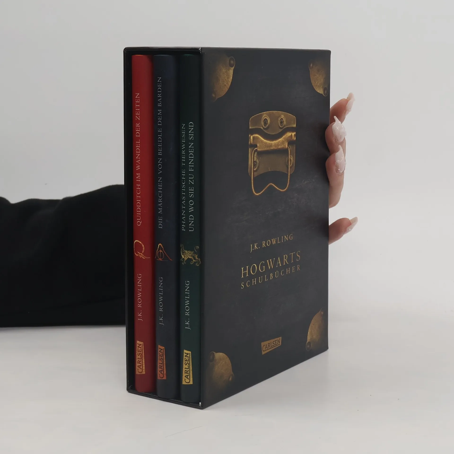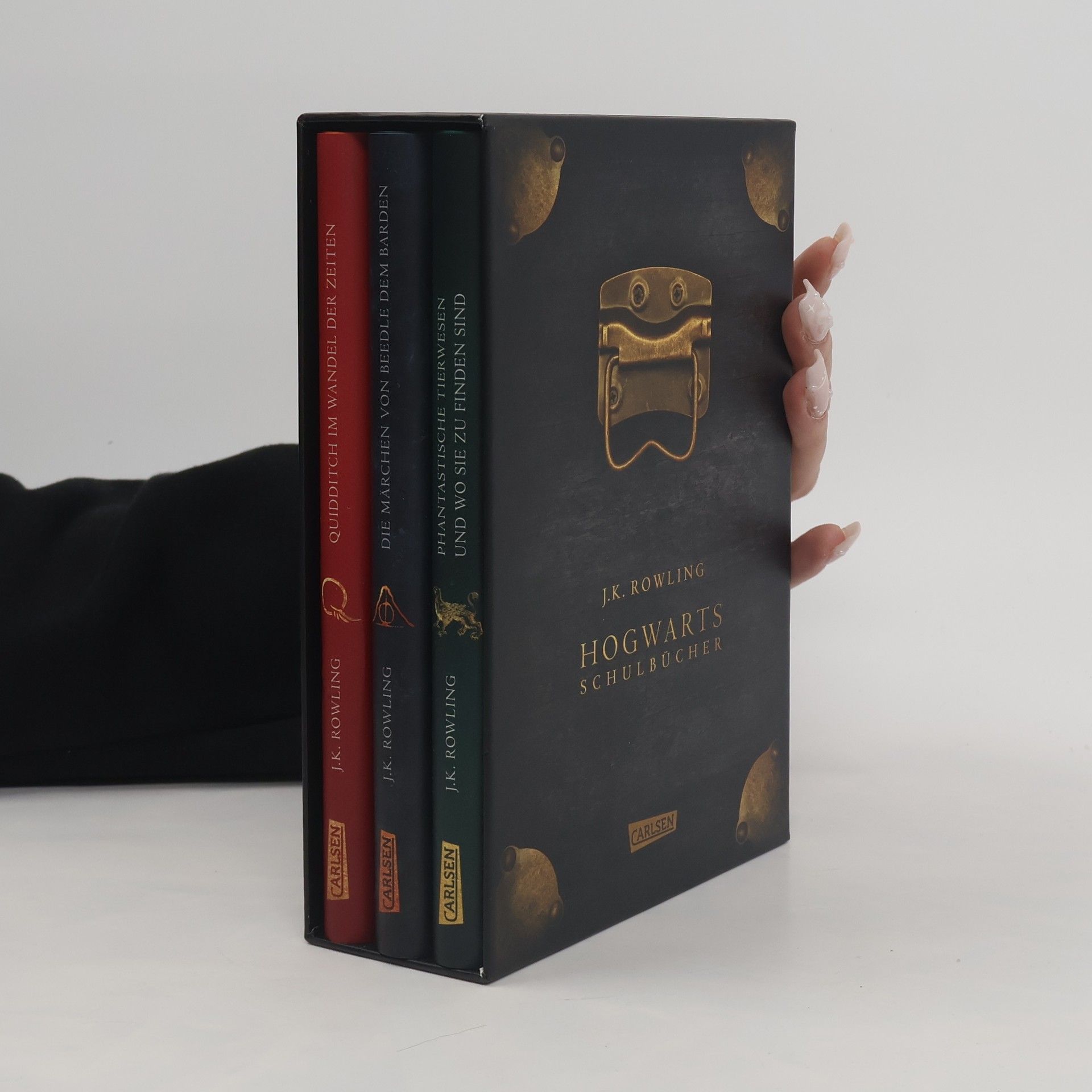 Für alle, die gerne in Hogwarts die Schulbank gedrückt hätten! Woher kommt eigentlich der Name »Quidditch«? Sind Niffler so kuschelig, wie sie aussehen? Und was geschieht in dem »Märchen von den drei Brüdern«? Die Antworten auf diese Fragen finden Hogwarts-Schüler*innen seit Generationen in den obligatorischen Schulbüchern. Nun gibt es die liebevoll gestalteten Lektüren gesammelt in einem Schuber – inklusive Fußnoten und Kommentaren für Muggel. Drei Pflichtlektüren aus der magischen Harry-Potter-Welt – darauf können sich Zauberlehrlinge freuen: • »Phantastische Tierwesen und wo sie zu finden sind« ist die unverzichtbare Einführung in die Magizoologie. Mit einem Vorwort von J.K. Rowling (als Newt Scamander) und sechs neuen Tierwesen aus dem Harry-Potter-Kosmos. • »Quidditch im Wandel der Zeiten« bietet interessante Fakten über die Anfänge und Entwicklungen des magischen Mannschaftssports. Mit einem Vorwort von Albus Dumbledore. • »Die Märchen von Beedle dem Barden« beinhaltet die fünf bekanntesten Erzählungen, inklusive dem Märchen von den drei Brüdern. Mit Anmerkungen von Albus Dumbledore zu jedem Märchen. ***Darf in keiner Fantasy-Sammlung fehlen: Das ideale Geschenk für Harry-Potter-Fans. Und für alle, die in die aufregende Welt von Hogwarts abtauchen möchten!***