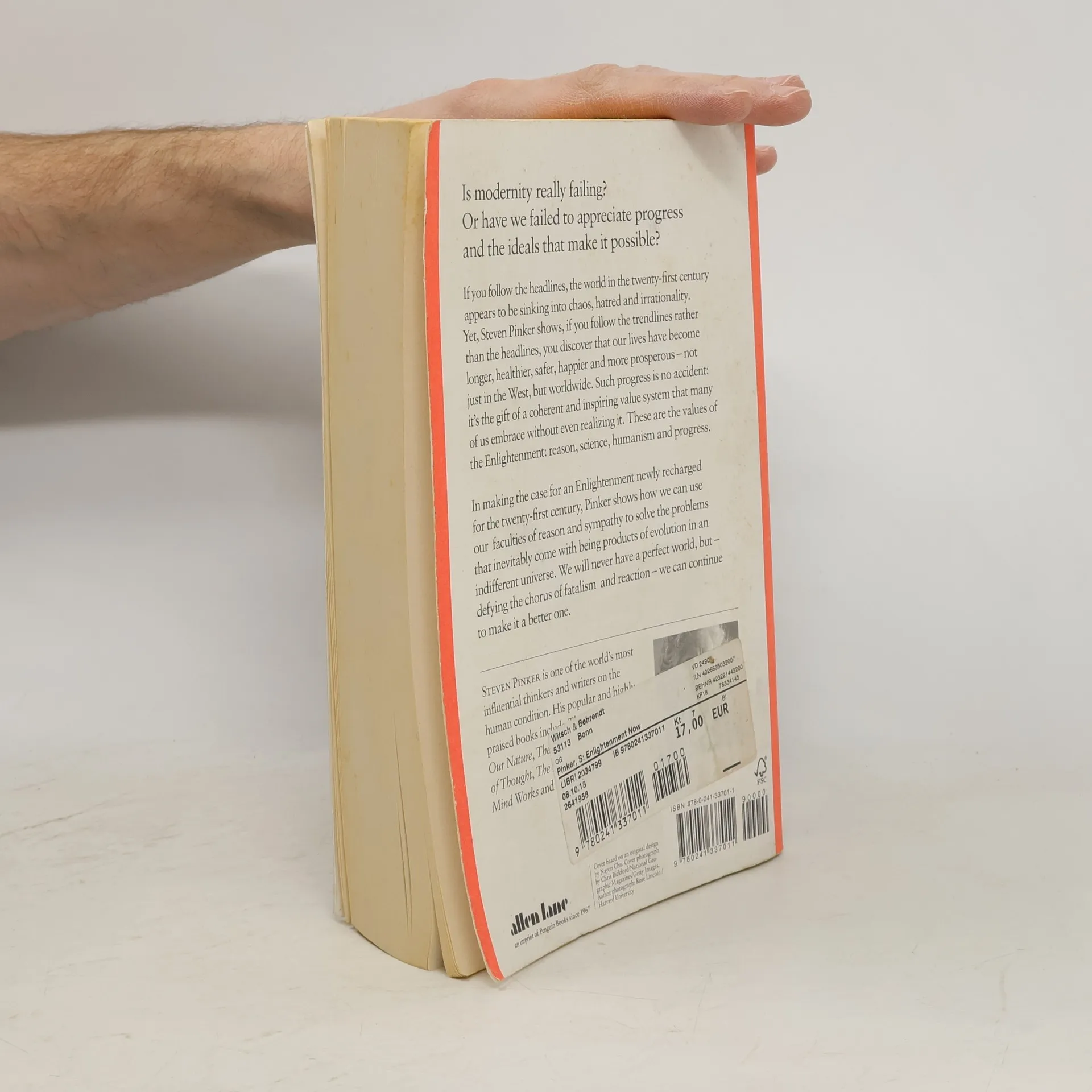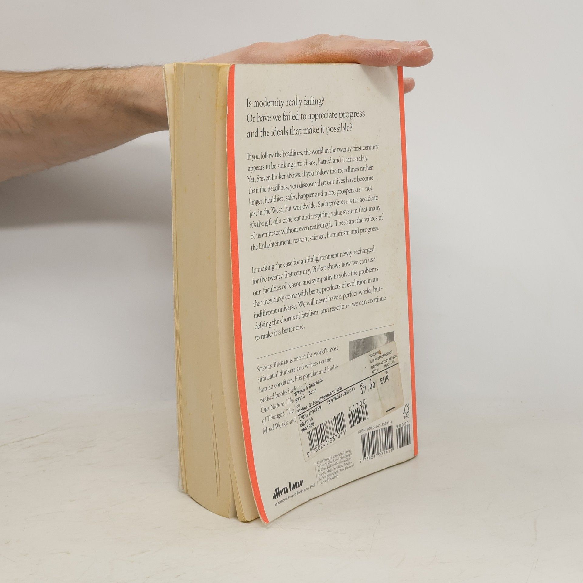Is modernity really failing ? Or have we failed to appreciate progress and the ideals that make it possible ? If you follow the headlines, the world in the twenty-first century appears to be sinking into chaos, hatred and irrationality. Yet, Steven Pinker shows, if you follow the trendlines rather than the headlines, you discover that our lives have become longer, healthier, safer, happier and more prosperous - not just in the West, but worldwide. Such progress is no accident : it's the gift of a coherent and inspiring value system that many of us embrace without even realizing it. These are the values of the Enlightenment : reason, science, humanism and progress. In making the case for an Enlightenment newly recharged for the twenty-first century, Pinker shows how we can use our faculties of reason and sympathy to solve the problems that inevitably come with being products of evolution in an indifferent universe. We will never have a perfect world, but - defying the chorus of fatalism and reaction - we can continue to make it a better one.