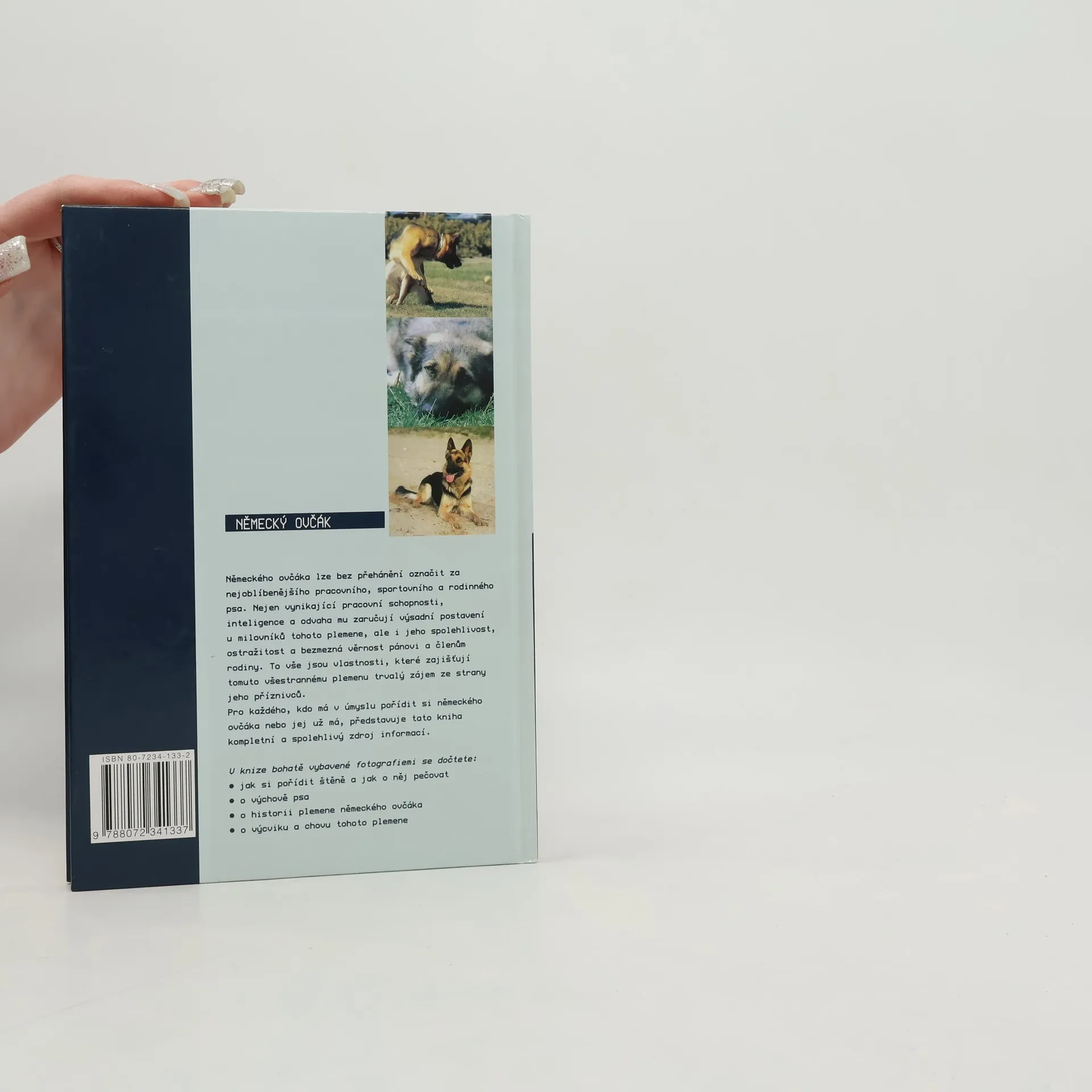 Kniha s rozsáhlou fotodokumentací vás blíže seznámi s nejoblíbenějším pracovním psem, německým ovčákem, který dokáže být oddaným pomocníkem, ale i přítelem celé rodiny. Jak si pořídit štěně německého ovčáka, jak je vychovat, pečovat o ně, dát mu výcvik; o historii plemene a chovatelských zásadách - to vše a ještě více se dozvíte v této knize.