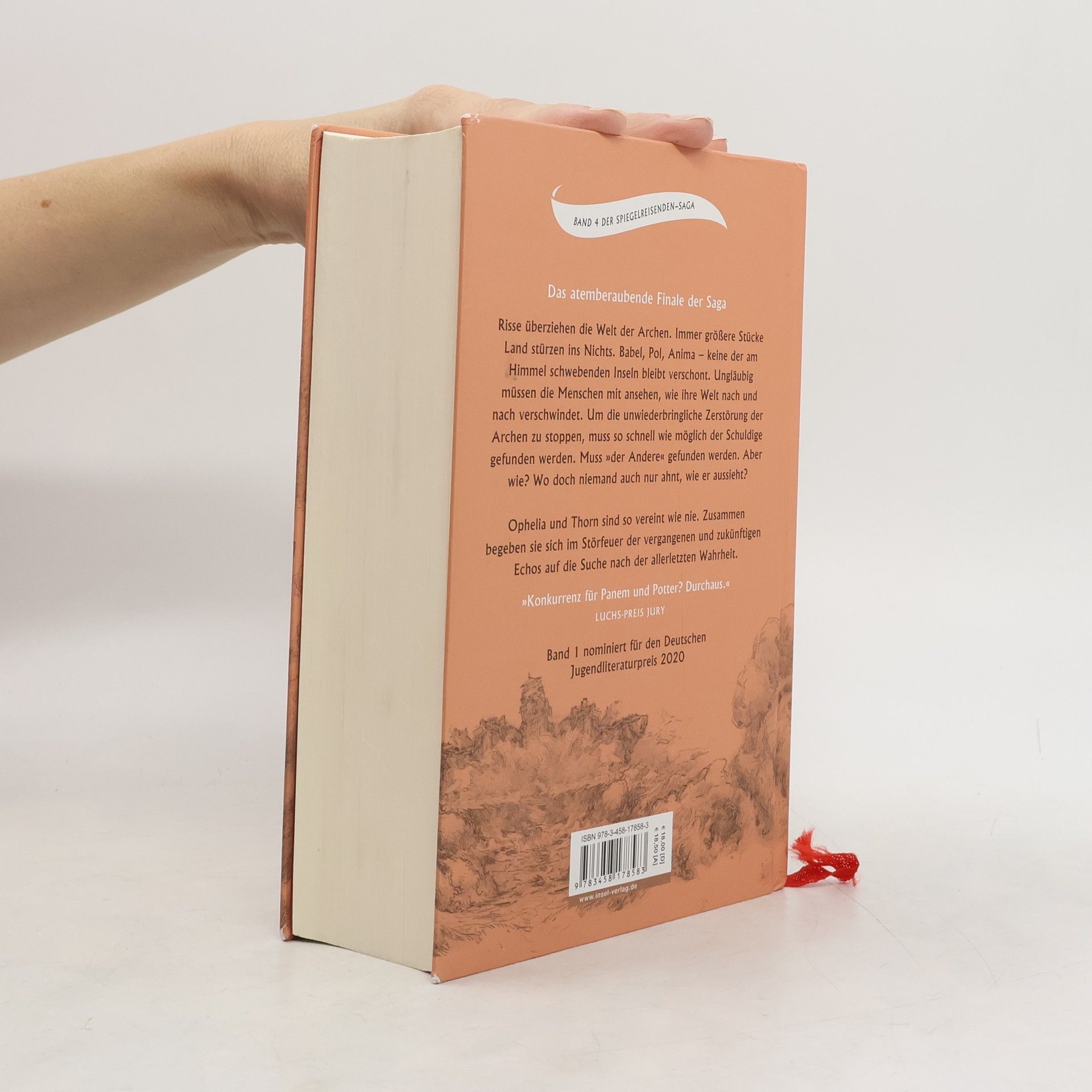 Risse überziehen die Welt der Archen. Einer jagt den nächsten, die Abgründe werden immer größer. Babel, Pol, Anima – keine der Archen bleibt verschont. Die Bewohner müssen ungläubig mitansehen, wie ihre Welt nach und nach auseinanderbricht. Um die unwiederbringliche Zerstörung der Archen zu stoppen, muss so schnell wie möglich der Schuldige gefunden werden. Muss »der Andere« gefunden werden. Aber wie? Wo doch niemand auch nur weiß, wie er aussieht? Ophelia und Thorn sind so vereint wie nie. Zusammen begeben sie sich auf unbekannte Wege, wo sie die Echos der Vergangenheit und der Gegenwart zum Schlüssel all der Rätsel führen werden. Das ungeheuerliche Finale der Saga der Spiegelreisenden.
