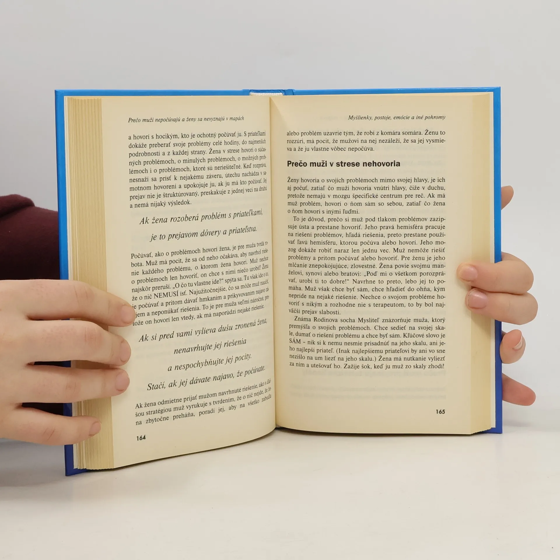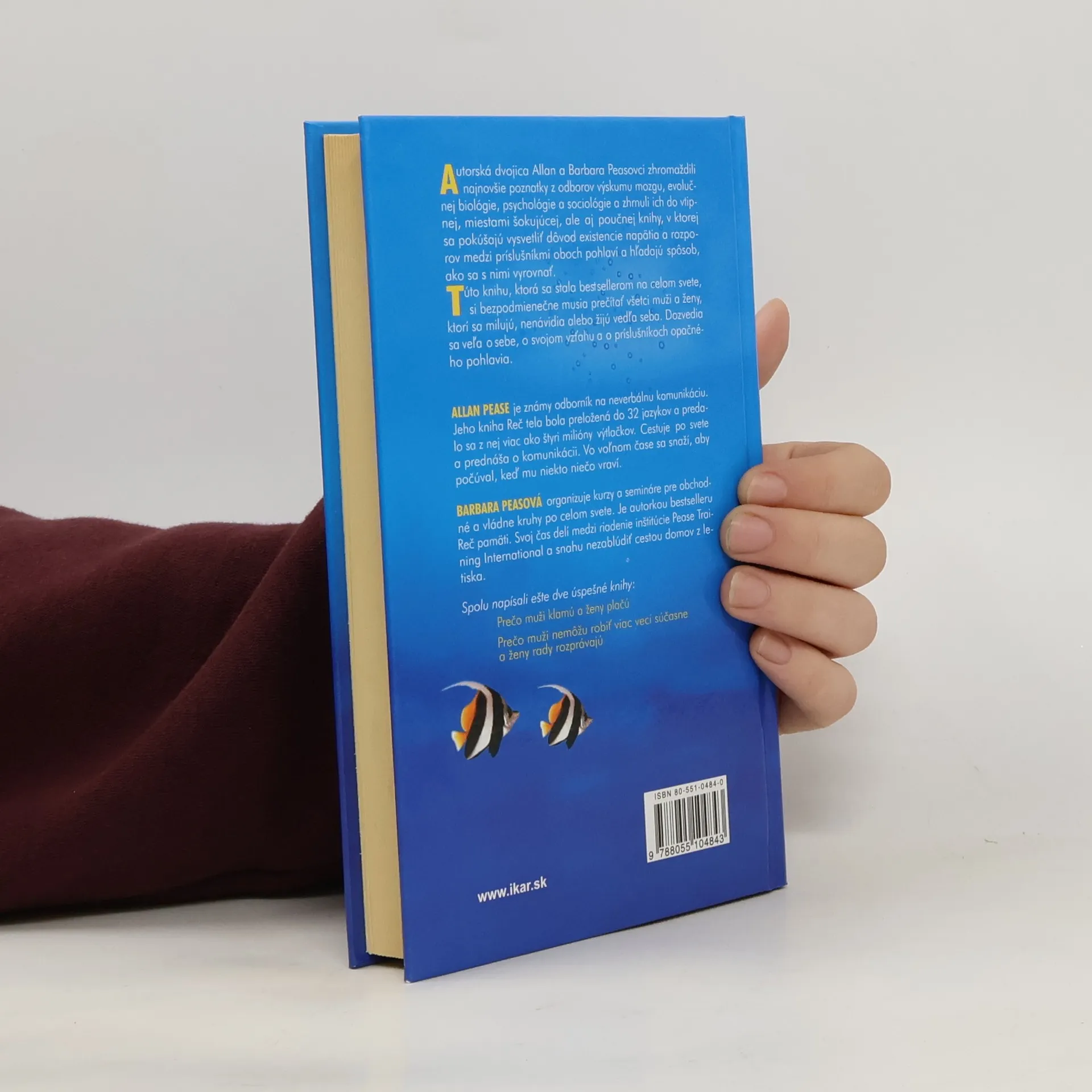Túto knihu by si mali prečítať všetci muži a ženy, ktorí sa milujú, nenávidia alebo žijú vedľa seba. Dozvedia sa veľa o sebe, o svojom vzťahu a o príslušníkoch opačného pohlavia. Autorská dvojica Allan a Barbara Peasovci zhromaždili najnovšie poznatky z odborov výzkumu mozgu, evolučnej biológie, psychológie a sociológie a zhrnuli ich do vtipnej, miestami šokujúcej, ale aj poučnej knihy, v ktorej sa pokúšajú vysvetliť dôvod existencie napätia a rozporov medzi príslušníkmi oboch pohlaví a hľadajú spôsob, ako sa s nimi vyrovnať.