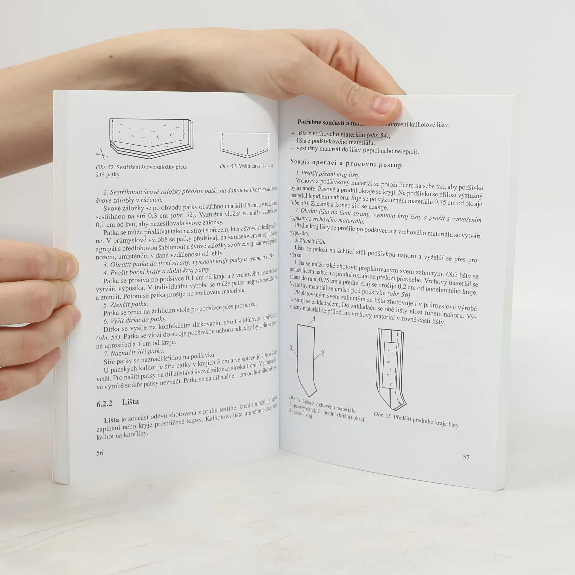 Seznamuje s pracovními prostředky, se základy ručního a strojového šití a žehlení, včetně bezpečnosti práce. Zahrnuje technologické postupy zhotovování součástek a částí oděvů a kalhot. Uvádí rozdíly mezi individuálním a průmyslovým zpracováním kalhot. (pro učební obor Krejčí, Krejčová)