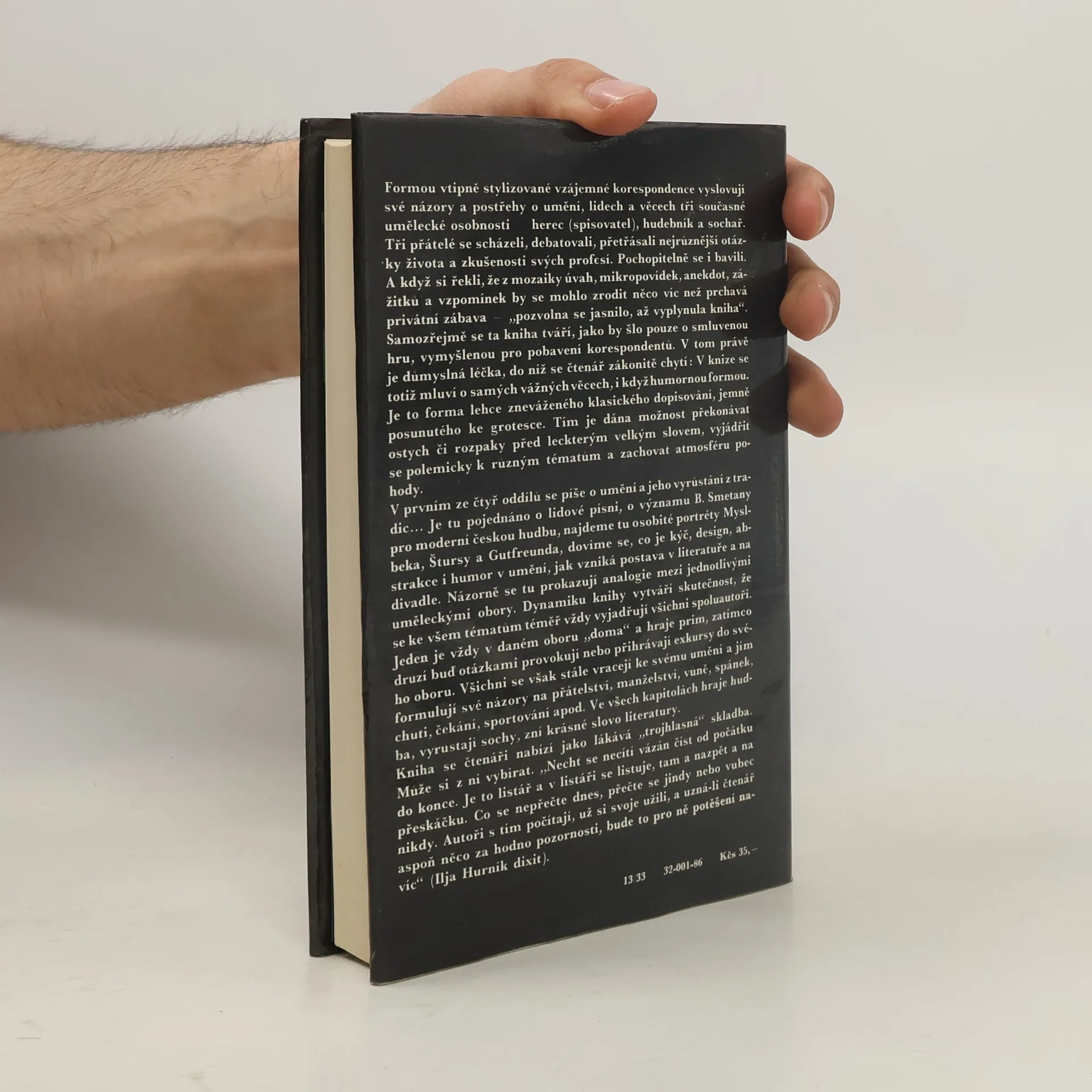 Ve vzájemné korespondenci vyslovují autoři – herec, muzikant a sochař – své názory na umění, postřehy o lidech a věcech.
