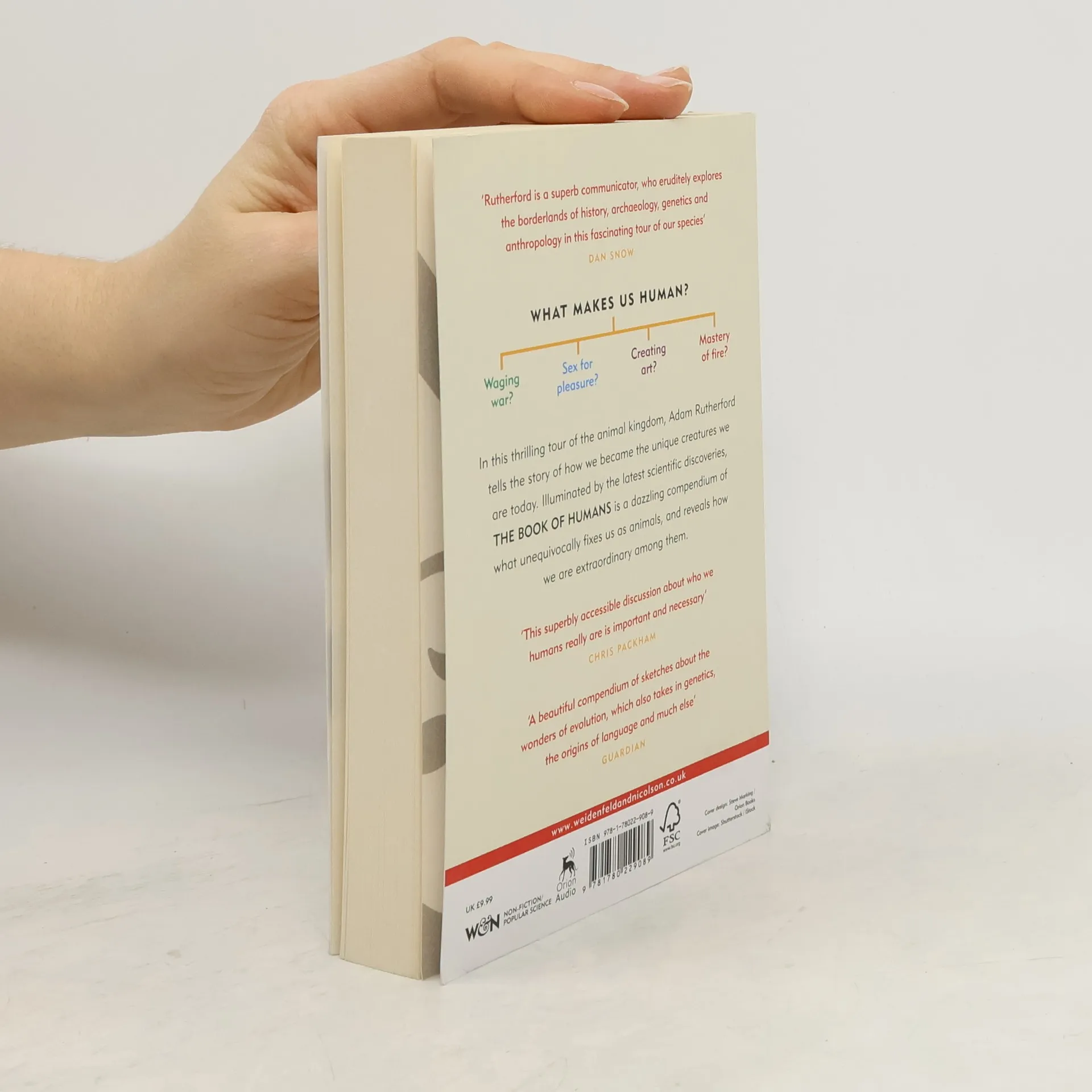 WHAT MAKES US HUMAN? Waging war? Sex for pleasure? Creating art? Mastery of fire? In this thrilling tour of the animal kingdom, Adam Rutherford tells the story of how we became the unique creatures we are today. Illuminated by the latest scientific discoveries, THE BOOK OF HUMANS is a dazzling compendium of what unequivocally fixes us as animals, and reveals how we are extraordinary among them.