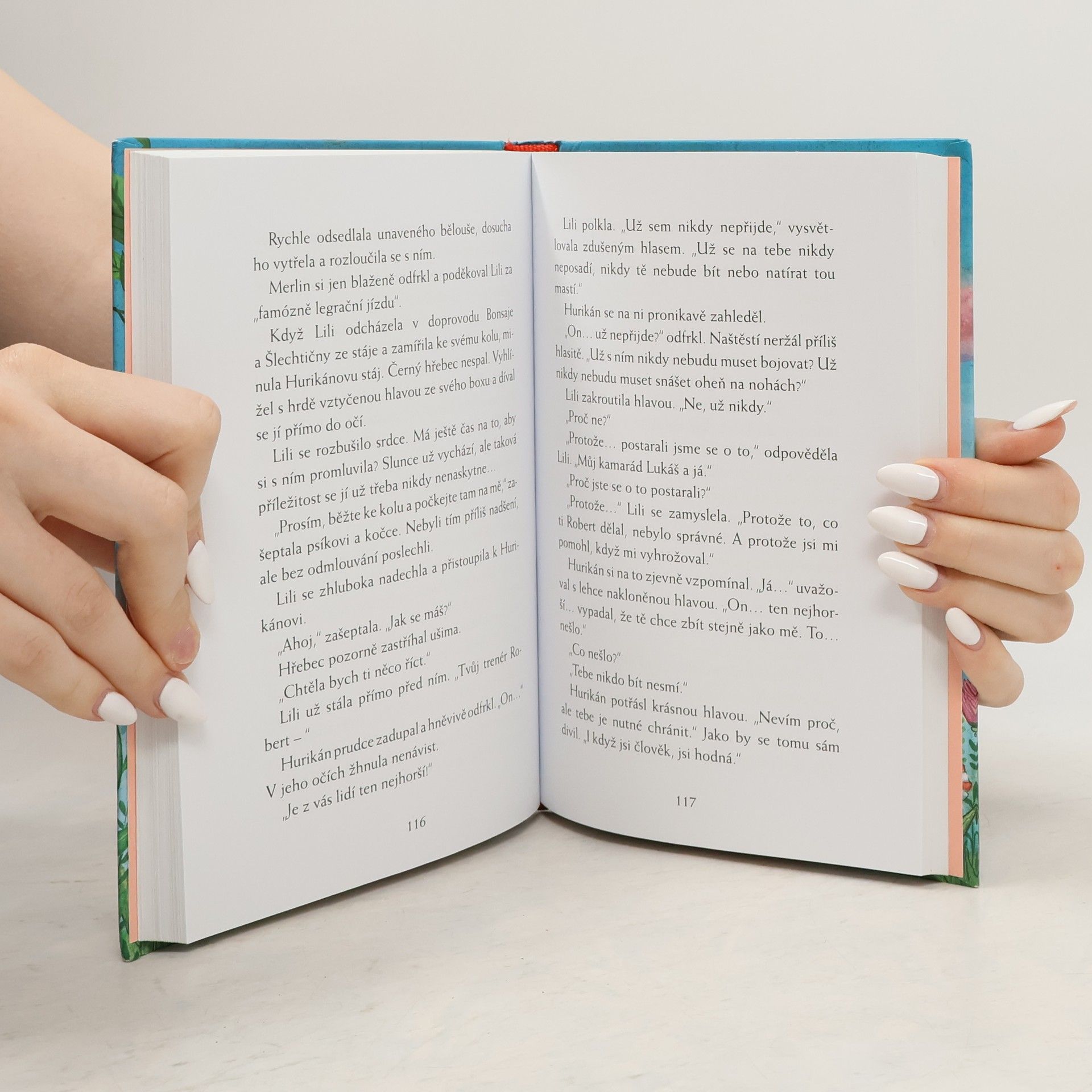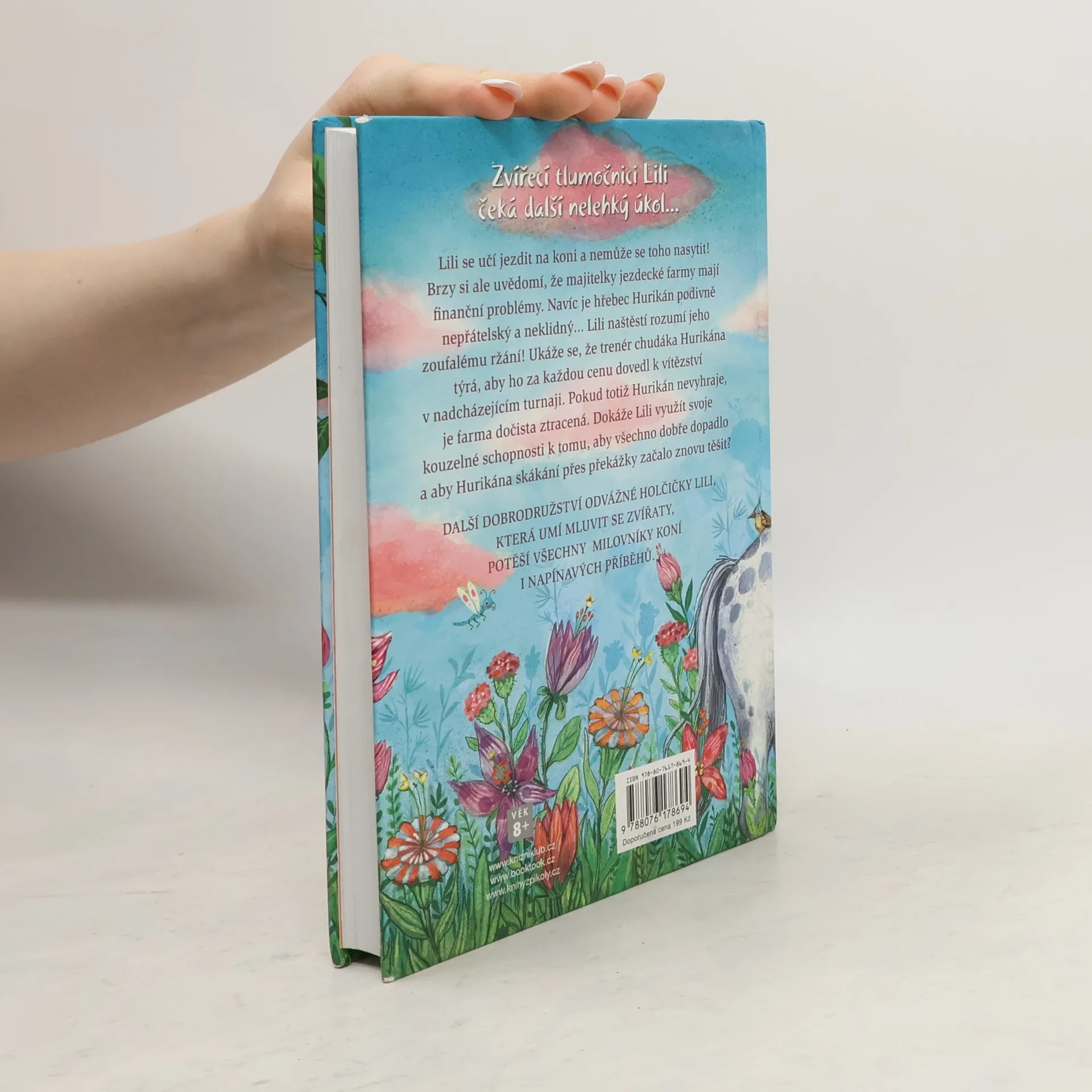 Lili se učí jezdit na koni a nemůže se toho nasytit! Brzy si ale uvědomí, že majitelky jezdecké farmy mají finanční problémy. Navíc je hřebec Hurikán podivně nepřátelský a neklidný… Lili naštěstí rozumí jeho zoufalému ržání! Ukáže se, že trenér chudáka Hurikána brutálně týrá, aby ho za každou cenu dovedl k vítězství v nadcházejícím turnaji. Pokud totiž Hurikán nevyhraje, je farma dočista ztracená. Dokáže Lili využít svoje kouzelné schopnosti k tomu, aby všechno dobře dopadlo a aby Hurikána skákání přes překážky začalo znovu těšit? Další díl oblíbené série o statečné Lili, která dokáže mluvit se zvířaty, je určená čtenářkám od 8 let.