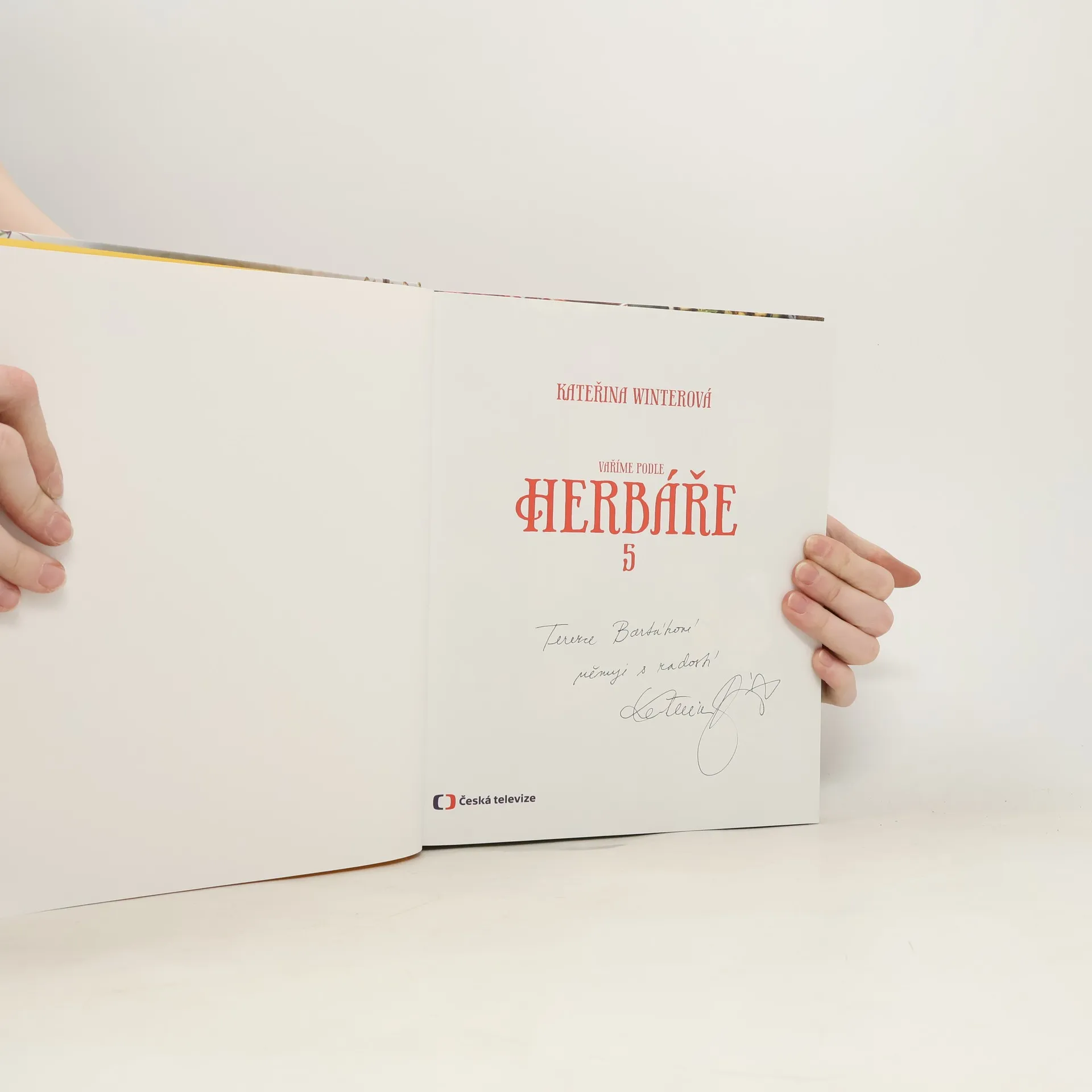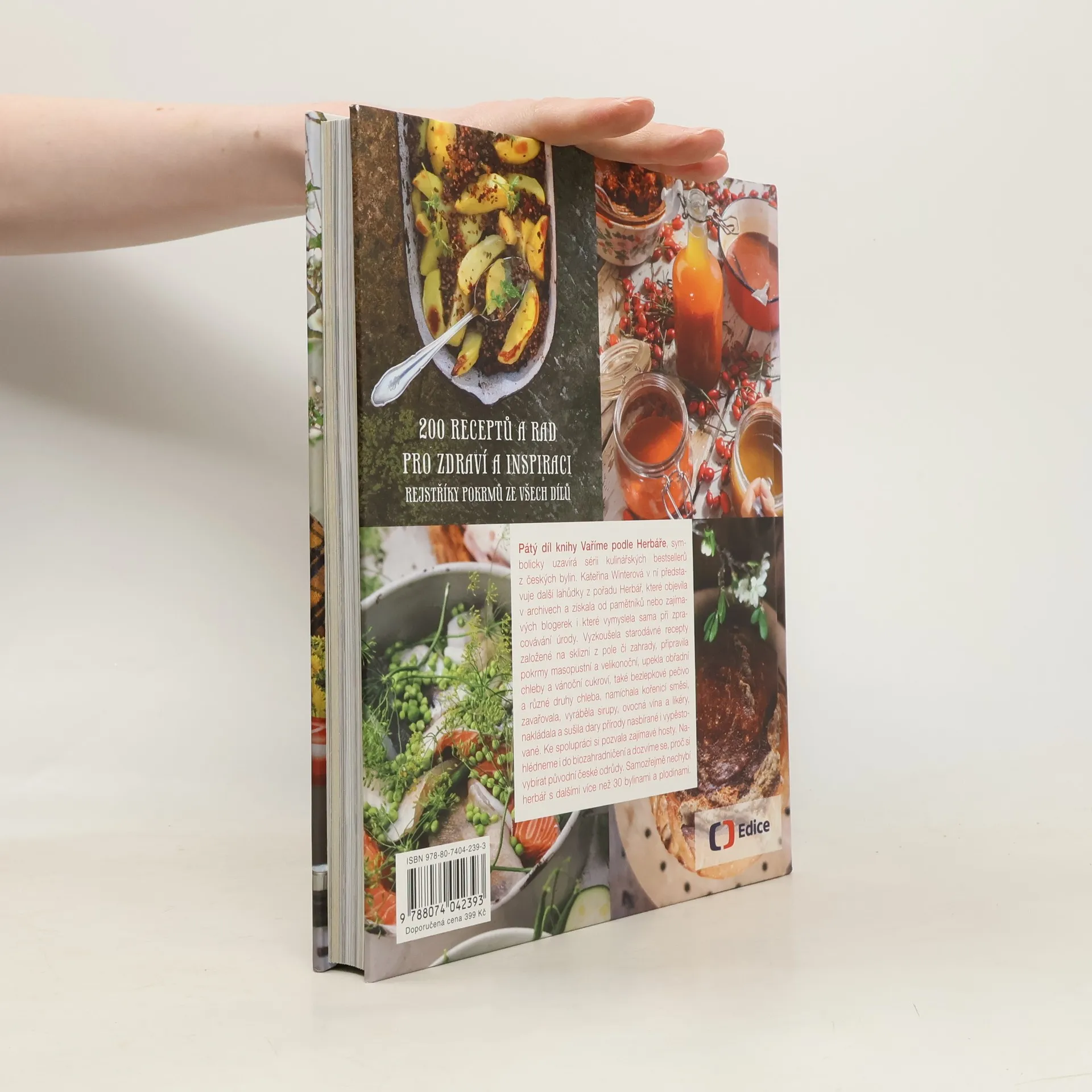 Pátý díl knihy Vaříme podle Herbáře symbolicky uzavírá sérii kulinářských bestsellerů z českých bylin. Kateřina Winterová v ní s Lindou Rybovou představuje další lahůdky z pořadu Herbář, které objevila v archivech a získala od pamětníků nebo zajímavých blogerek i které vymyslela sama při zpracovávání úrody. Vyzkoušela starodávné recepty založené na sklizni z pole či zahrady, na pokrmy masopustní a velikonoční dobroty, na obřadní chleby a vánoční cukroví, ale také na bezlepkové pečivo a různé druhy chleba, připravila kořenicí směsi, zavařovala, nakládala a sušila dary přírody nasbírané i vypěstované. Kniha by nebyla úplná bez bylinných zavařenin, sirupů, tinktur, ovocných vín a likérů. Kromě vaření s bylinami nahlédneme také do biozahradničení a dozvíme se, proč si vybírat původní české odrůdy. Samozřejmě nechybí herbář s dalšími více než 30 bylinami a plodinami. Všichni, kteří vaří podle Herbáře, jistě ocení rejstříky pokrmů ze čtyř předchozích knih.