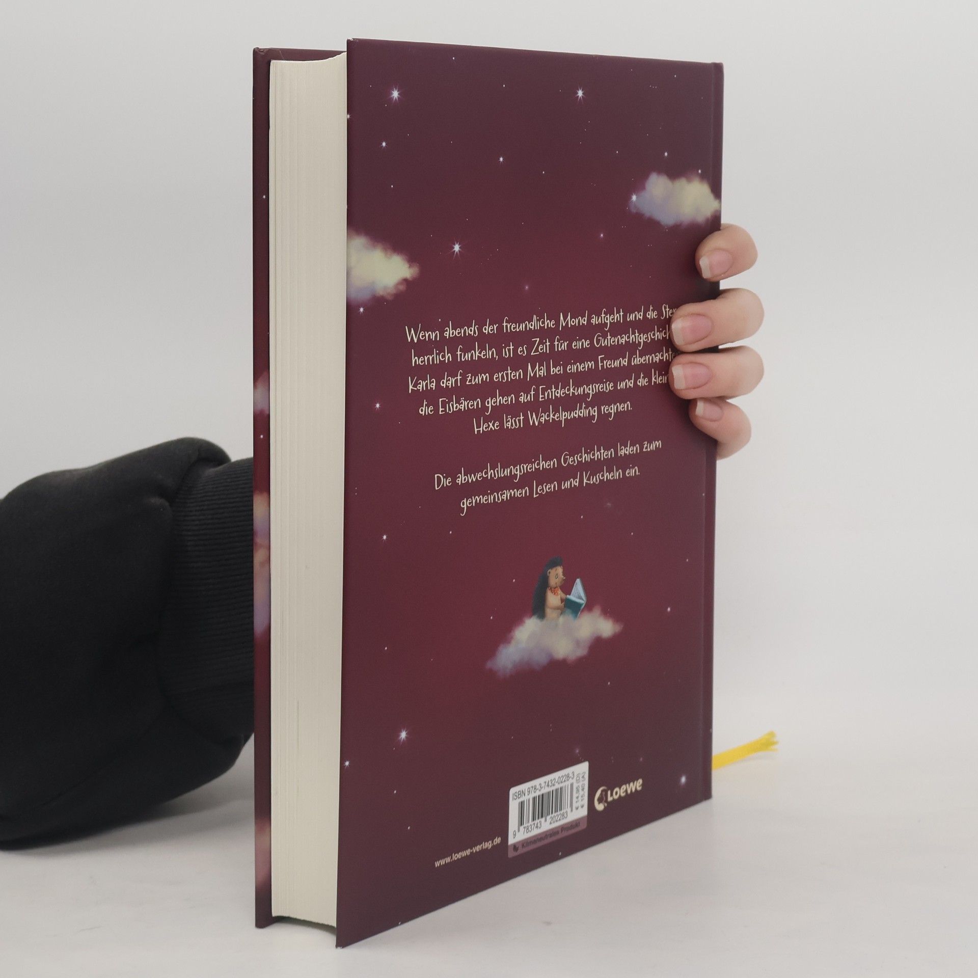 Wenn abends der freundliche Mond aufgeht und die Sterne herrlich funkeln, ist es Zeit für eine Gutenachtgeschichte ! Karla darf zum ersten Mal bei einem Freund übernachten, die Eisbären gehen auf Entdeckungsreise und die kleine Hexe lässt Wackelpudding regnen. Die abwechslungsreichen Geschichten laden zum gemeinsamen Lesen und Kuscheln ein. Dieser Vorleseband mit 111 kurzen Geschichten eignet sich bestens zum abendlichen Vorlesen und Kuscheln .