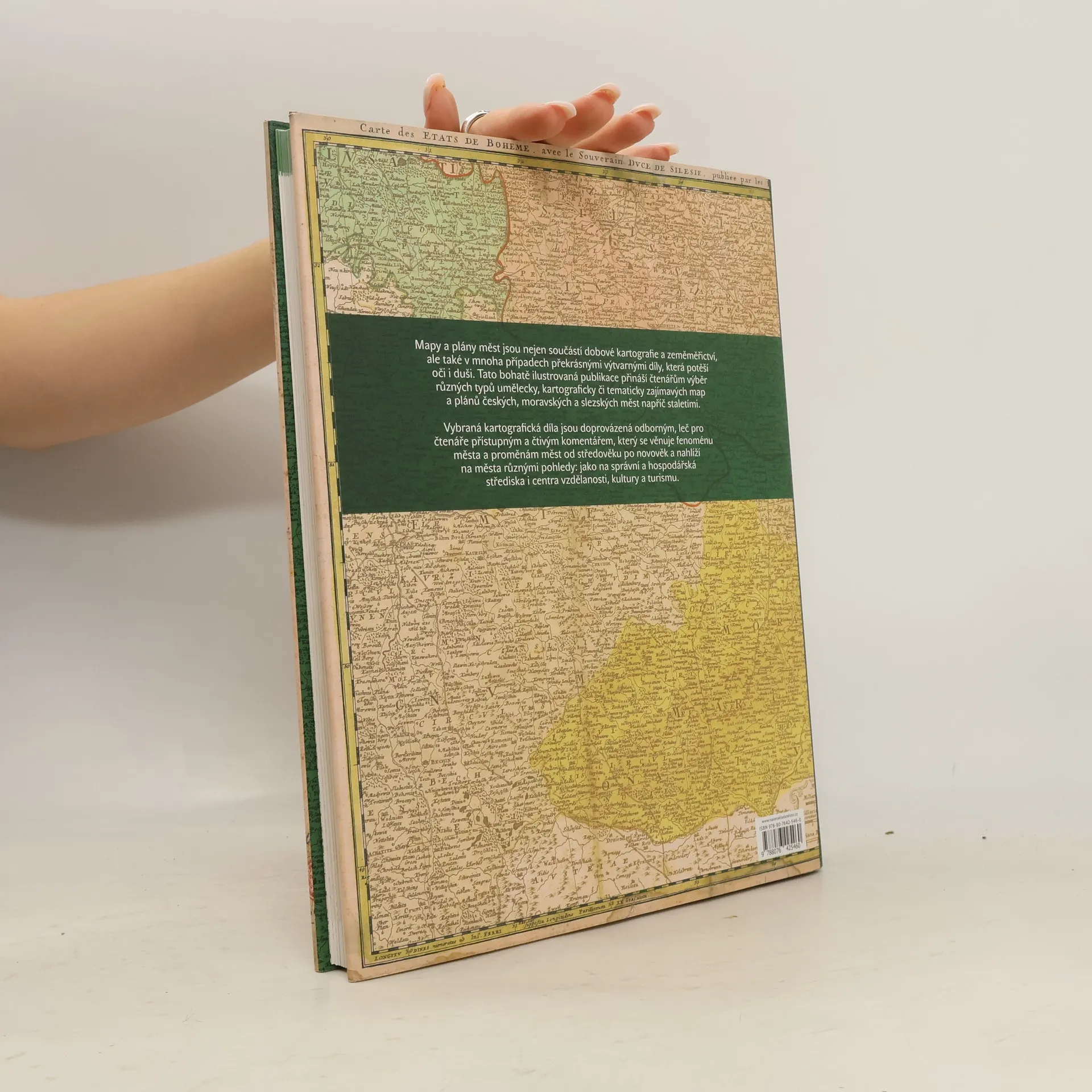 Mapy a plány měst jsou nejen součástí dobové kartografie a zeměměřictví, ale také v mnoha případech překrásnými výtvarnými díly, která potěší oči i duši. Tato bohatě ilustrovaná publikace přináší čtenářům výběr různých typů umělecky, kartograficky či tematicky zajímavých map a plánů českých, moravských a slezských měst napříč staletími. Vybraná kartografická díla jsou doprovázená odborným, leč pro čtenáře přístupným a čtivým komentářem, který se věnuje fenoménu města a proměnám měst od středověku po novověk a nahlíží na města různými pohledy: jako na správní a hospodářská střediska i centra vzdělanosti, kultury a turismu.