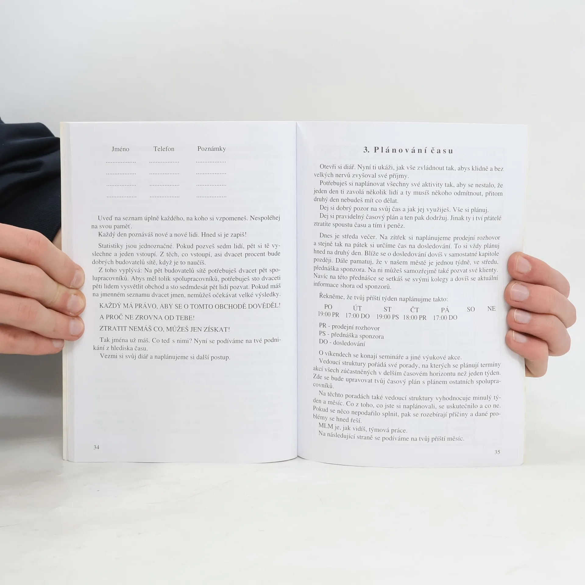 Od počátku mého působení v multi - level marketingu (dále jen MLM) slýchávám o problémech, které mají lidé vstupující do našeho obchodu. I já jsem měl, ale po delší době jsem zjistil, že jsem si je vytvářel sám. Dělal jsem to tak dlouho, až mi má sponzorka řekla: "V MLM můžeš najít jen tři věci: 1. PROBLÉMY 2. VÝMLUVY 3. PENÍZE. Co chceš? Vyber si." Má odpověď byla jasná: "Chci peníze!" "Potom zapomeň na první dvě věci a dobře mě poslouchej. Nedělej problémy a nedovol to ani druhým. Nevymýšlej si žádné výmluvy, vše u nás děláš dobrovolně a neposlouchej ani výmluvy druhých. Raději se jich zeptej, zda je někdo nutí. A začni už konečně se mnou vydělávat peníze. Já tě to naučím! To co tě naučím, ty budeš pak učit dál své spolupracovníky. Pak s nimi budeš učit jejich další kolegy a....a tak dál."