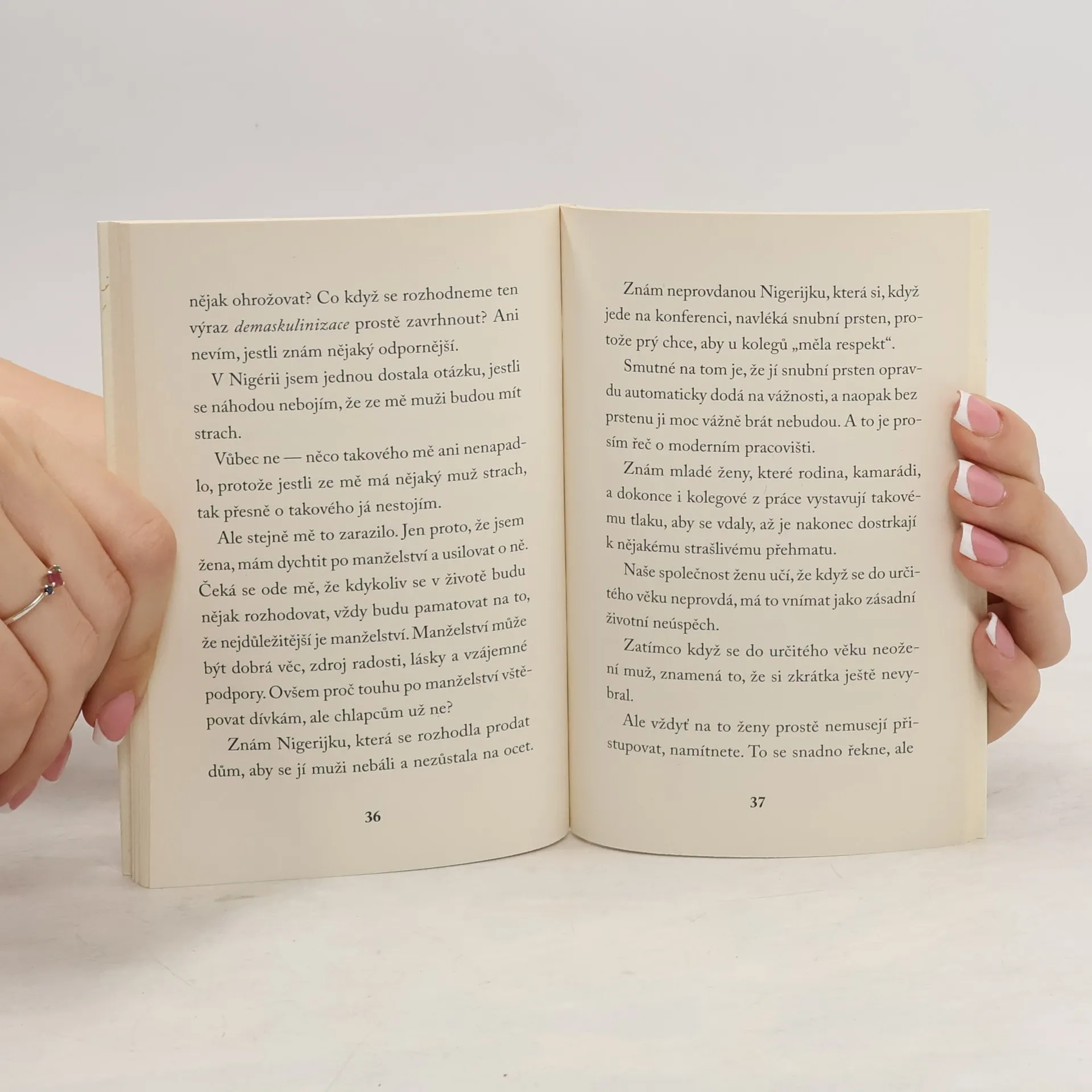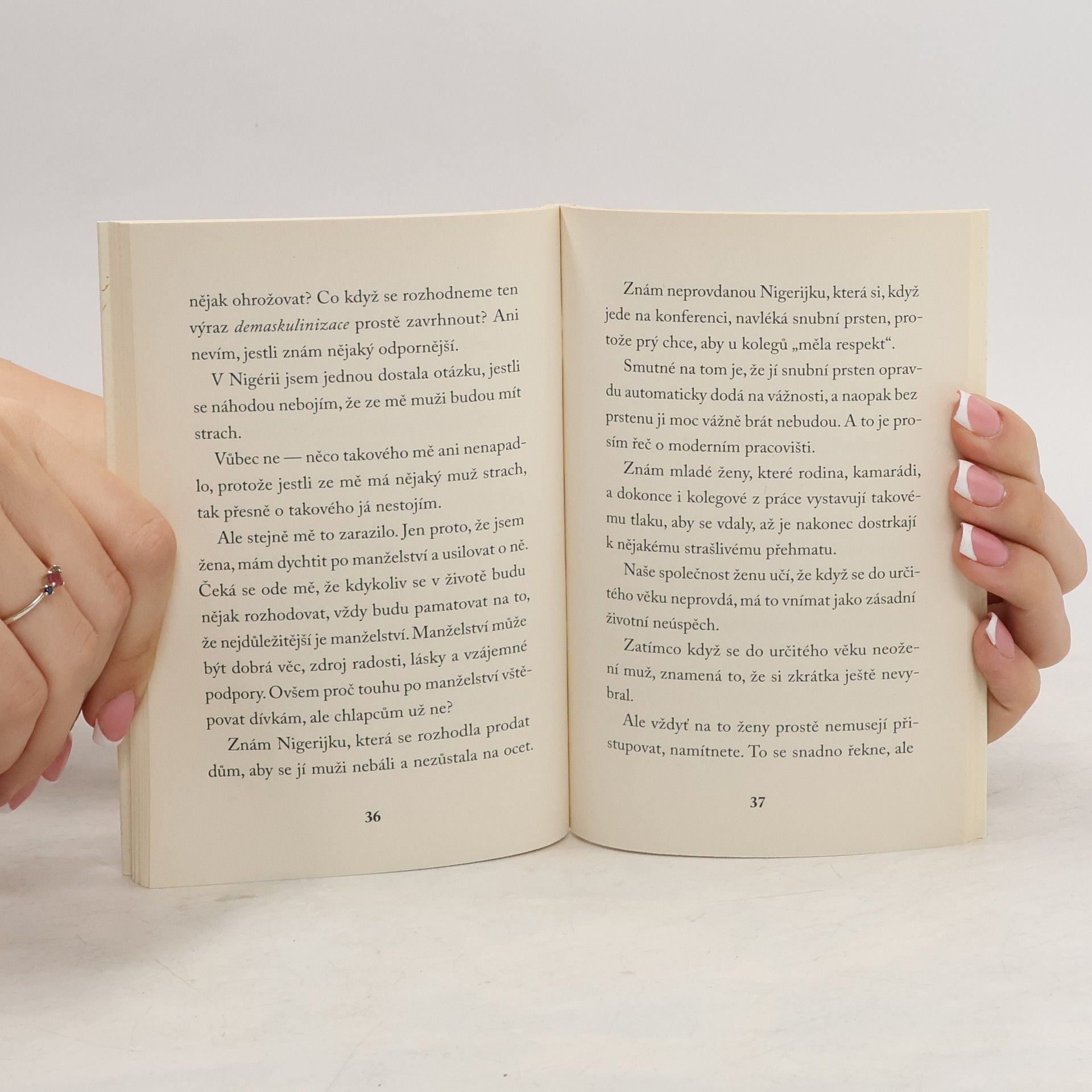 Feministka. Podivné slovo, s nímž se většina poprvé setká jako s nadávkou. Nemůže si najít chlapa, chce jen víc peněz, je ošklivá. Podobné a další stereotypy se až příliš často skrývají za cizím slovem „feminismus“. Aspoň takovou zkušenost má nigerijská bestselleristka Chimamanda Ngozi Adichieová. Kdykoliv se jako dítě i teenagerka pokusila nahlas říct svůj názor nebo jednat samostatně, hned to schytala. Feministka! Adichieová se ve dvou esejích vyrovnává s feminismem a obhajuje jej. Feminismus pro ni není bojem za ženská práva, ale snahou o lepší svět pro všechny. Do pravidel každodennosti jsou totiž kromě toho, co smí žena, vepsány povinnosti mužů. Všichni se tak krčí v klíckách vlastního genderu a výsledkem je často nešťastný, násilný svět. Feminismus není cestou boje — je možností sblížení.