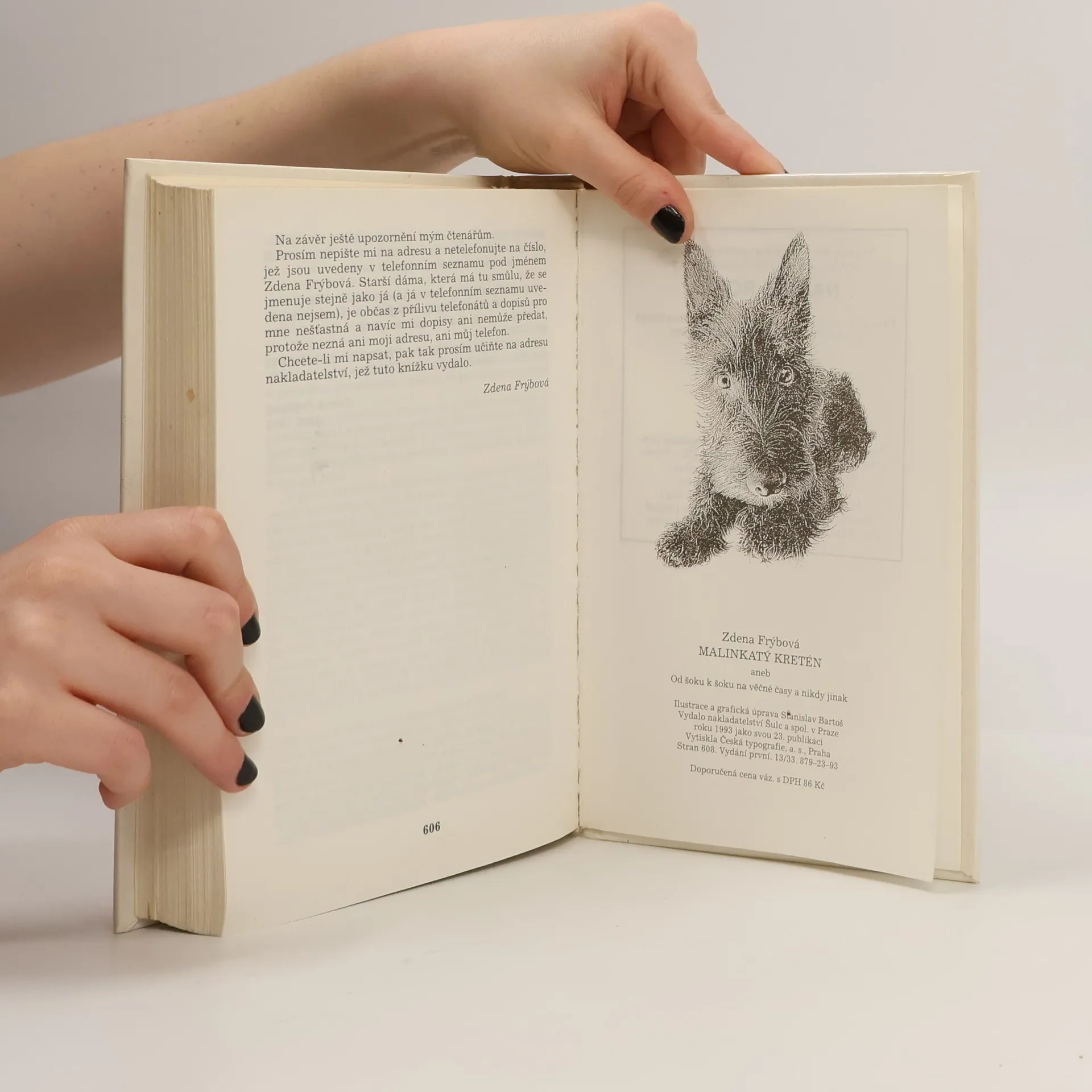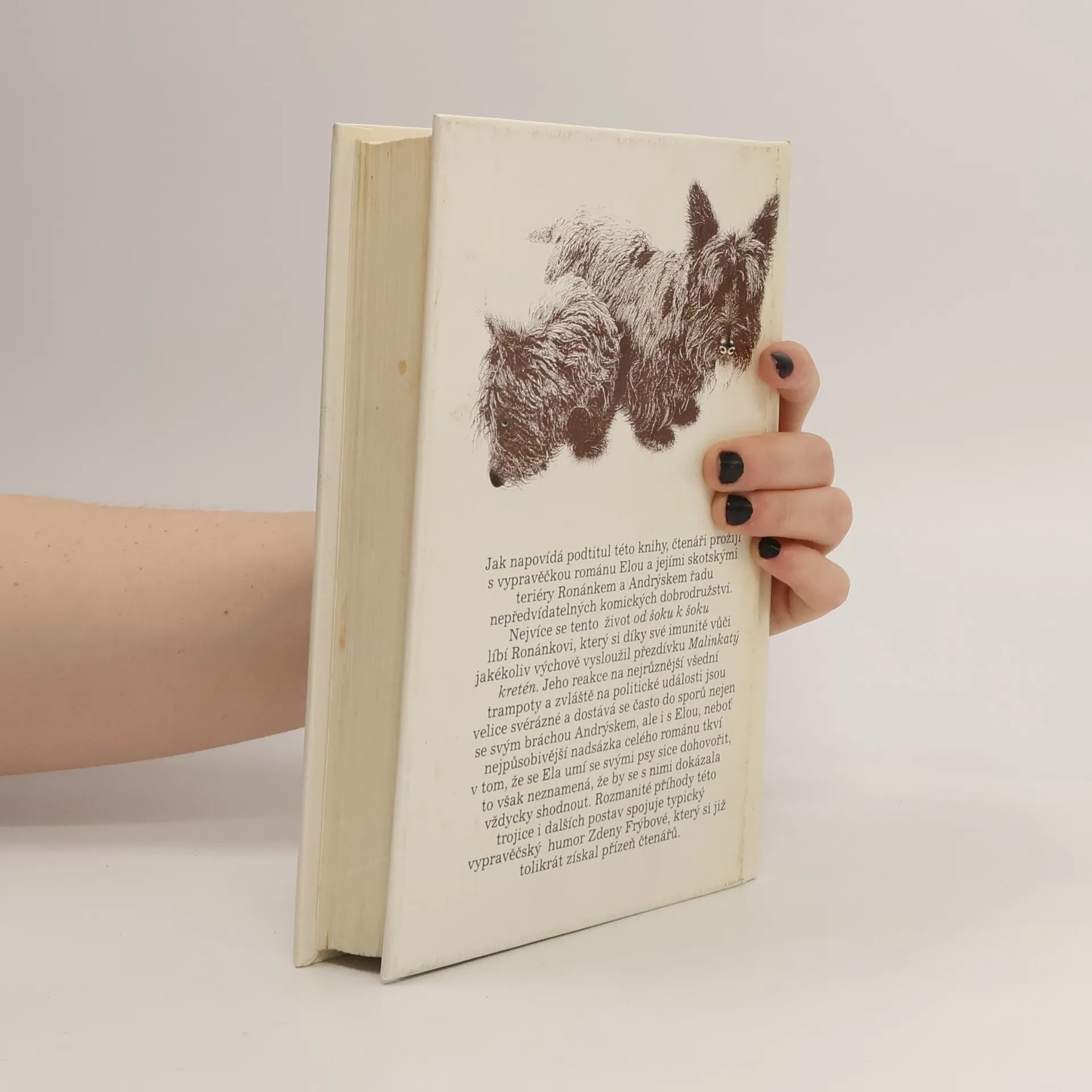 Humoristický román, v němž dva skotští teriéři Andrýsek a Ronánek přesvědčují dámu středního věku, že i po rozvodu může být život báječný a vzrušující. Vypravěčka románu Ela hned v úvodu knihy šokuje svého manžela, když jeho návrh na rozvod přijme s bohorovným klidem a okamžitě si začne plánovat život podle svého. Nečekané maléry, průšvihy a katastrofy, které život přináší, se líbí především Ronánkovi,který se díky své imunitě vůči jakékoliv výchově vysloužil přezdívku Malinkatý kretén.Jeho reakce na různé rodinné a společenské události jsou tak svérázné, že se často poštěká nejen se svým bráchou Andrýskem, ale i s Elou. Nejpůsobivější nadsázka celého románu tkví v tom, že se Ela umí se svými psy sice dohovořit, to však neznamená, že se s nimi shodne. Rozmanité příhody této trojice i dalších postav spojuje typický vypravěčský humor Zdeny Frýbové, který se již tolikrát získal srdce čtenářů.... celý text