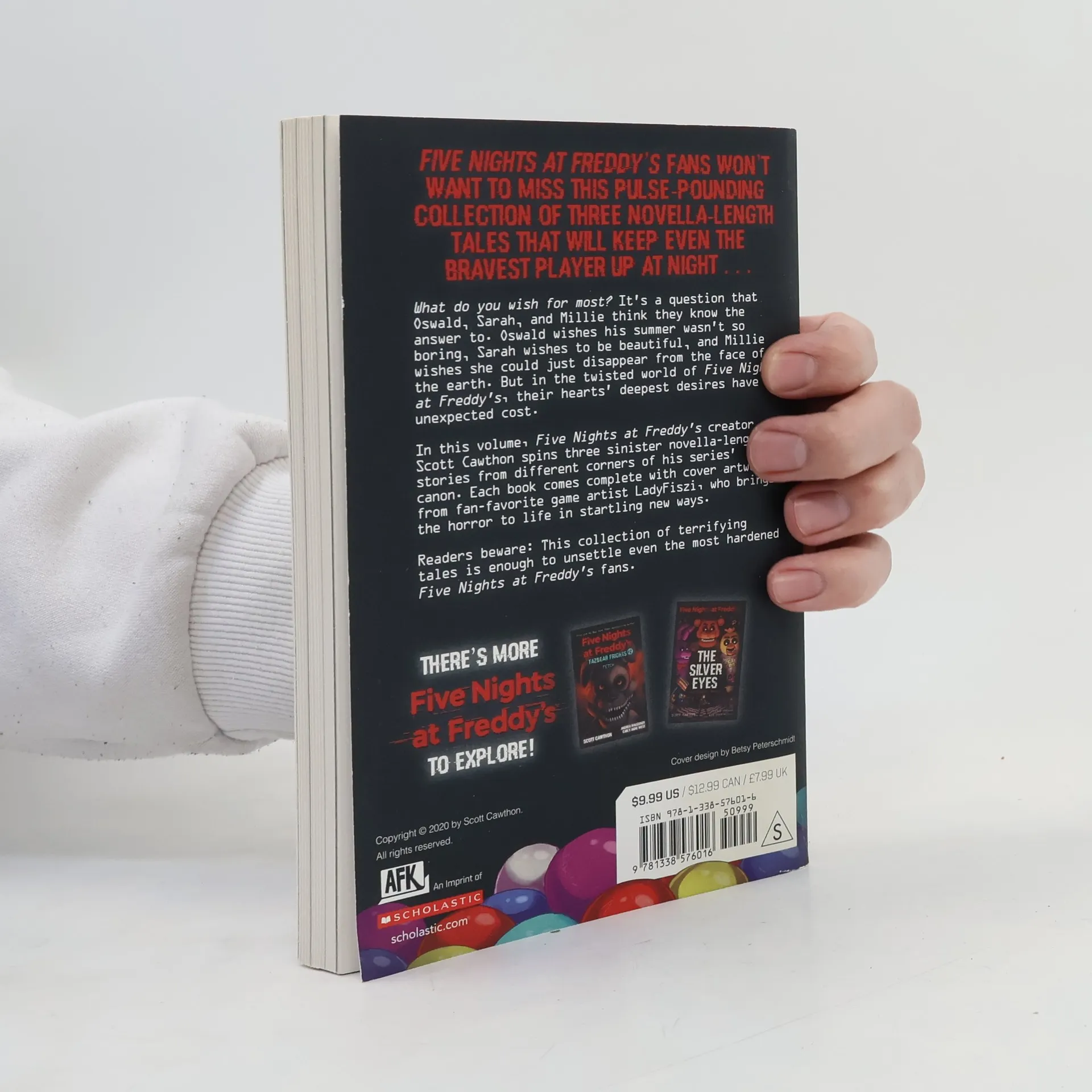 Five Nights at Freddy's fans won't want to miss this pulse-pounding collection of three novella-length tales that will keep even the bravest player up at night . . . What do you wish for most? It's a question that Oswald, Sarah, and Millie think they know the answer to. Oswald wishes his summer wasn't so boring, Sarah wishes to be beautiful, and Millie wishes she could just disappear from the face of the earth. But in the twisted world of Five Nights at Freddy's, their hearts' deepest desires have an unexpected cost. In this volume, horror master Scott Cawthon spins three sinister novella-length stories from different corners of his series' canon. Each story comes complete with accompanying artwork from fan-favorite game artist LadyFiszi, who brings the horror to life in startling new ways. Readers beware: This collection of terrifying tales is enough to unsettle even the most hardened Five Nights at Freddy's fans.